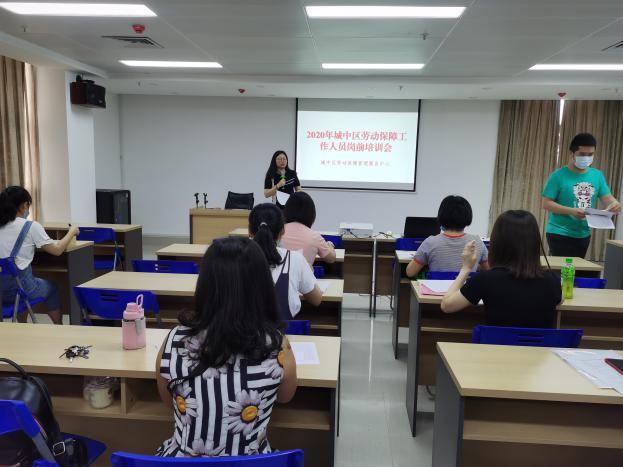 培训课程安排形式多样,城中区劳保中心分为社保、就业、退管三大类,分别由相应的工作人员对新入职人员培训,工作人员都详细为大家介绍了各自工作岗位职责要求、工作模式及对员工的素质要求等方面的内容。并提出三点希望:一是主动学习、提高为民服务能力,做全能型社区工作者;二是转变角色、尽快适应工作要求;三是廉洁自律、遵守纪律。由于新入职的小伙伴已经上岗了一周多的时间,对于工作上也存有大大小小的问题,培训会结束后纷纷向中心人员询问“灵活就业人员指的是什么?”“办就业创业证是当场办结吗?”.....等诸如此类的工作问题,我们一一耐心解答,现场的小伙伴也很认真勤奋地记录在笔记本上,笑着说一定会认真完成工作。