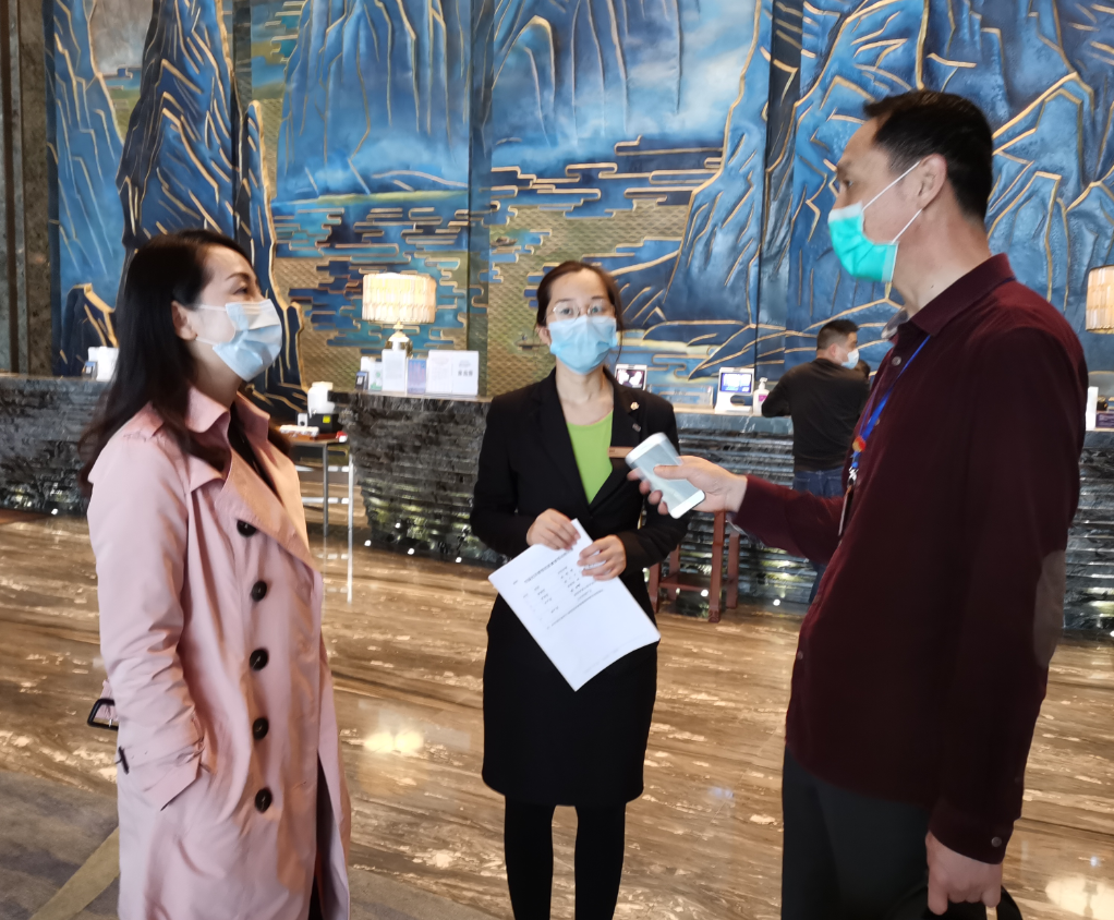 劳保中心与市场监督管理局负责同志向万达嘉华酒店管理人员了解复工复产情况