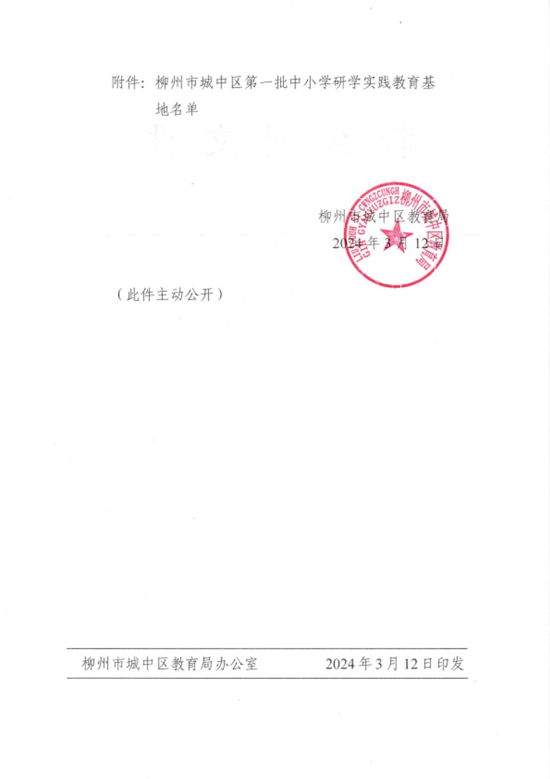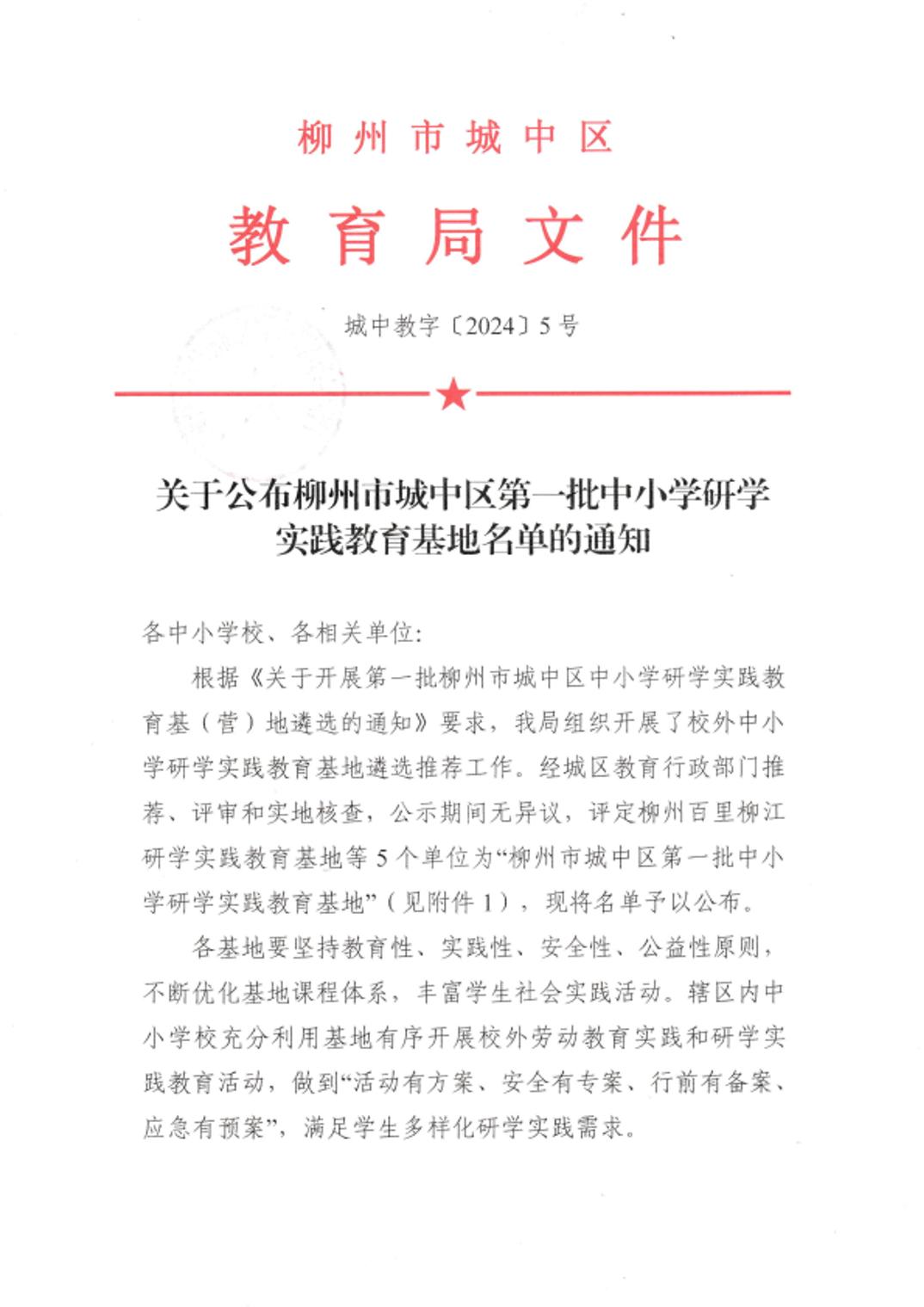 关于公布柳州市城中区第一批校外中小学劳动教育实践基地名单的通知