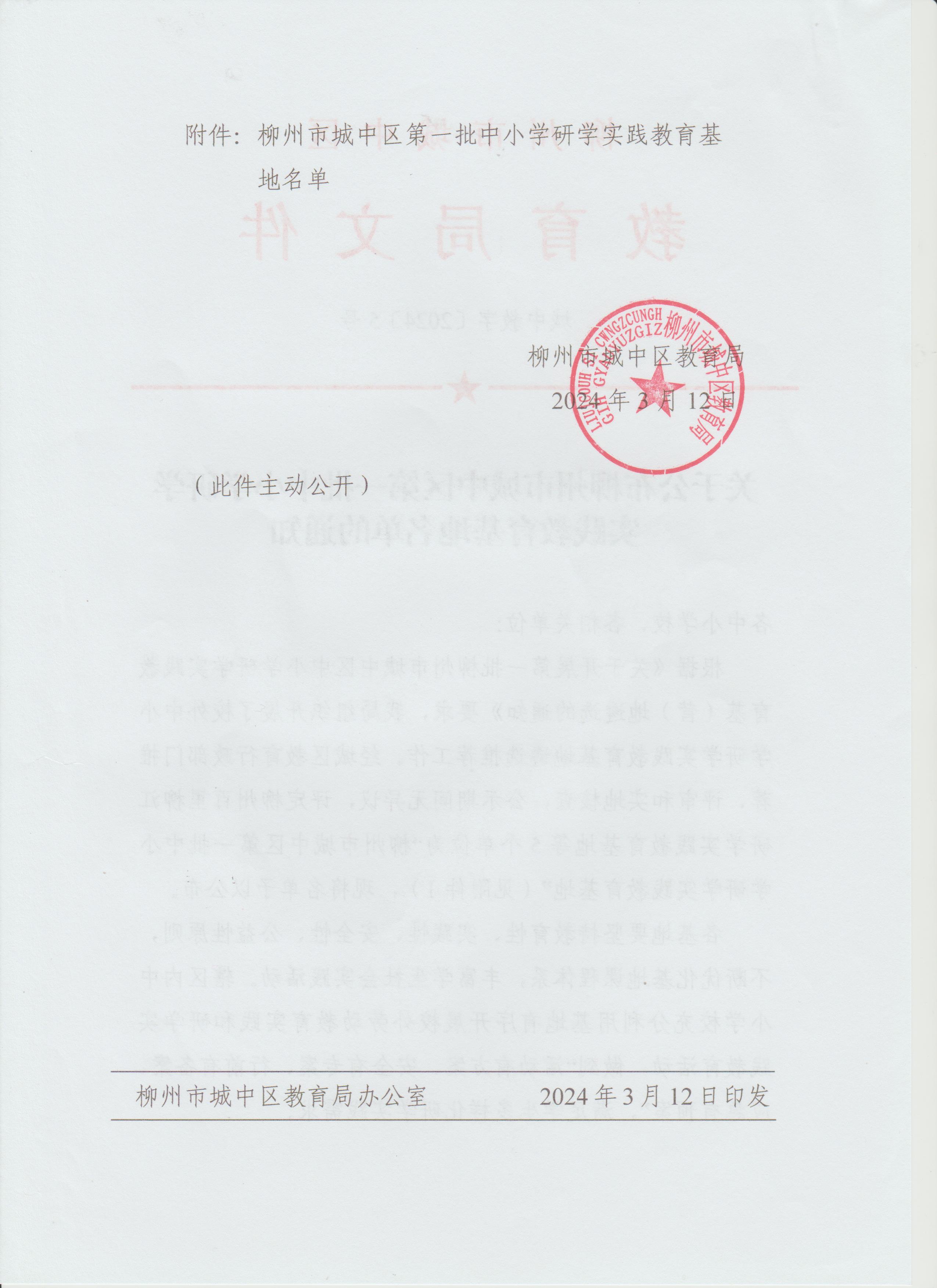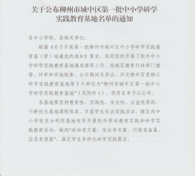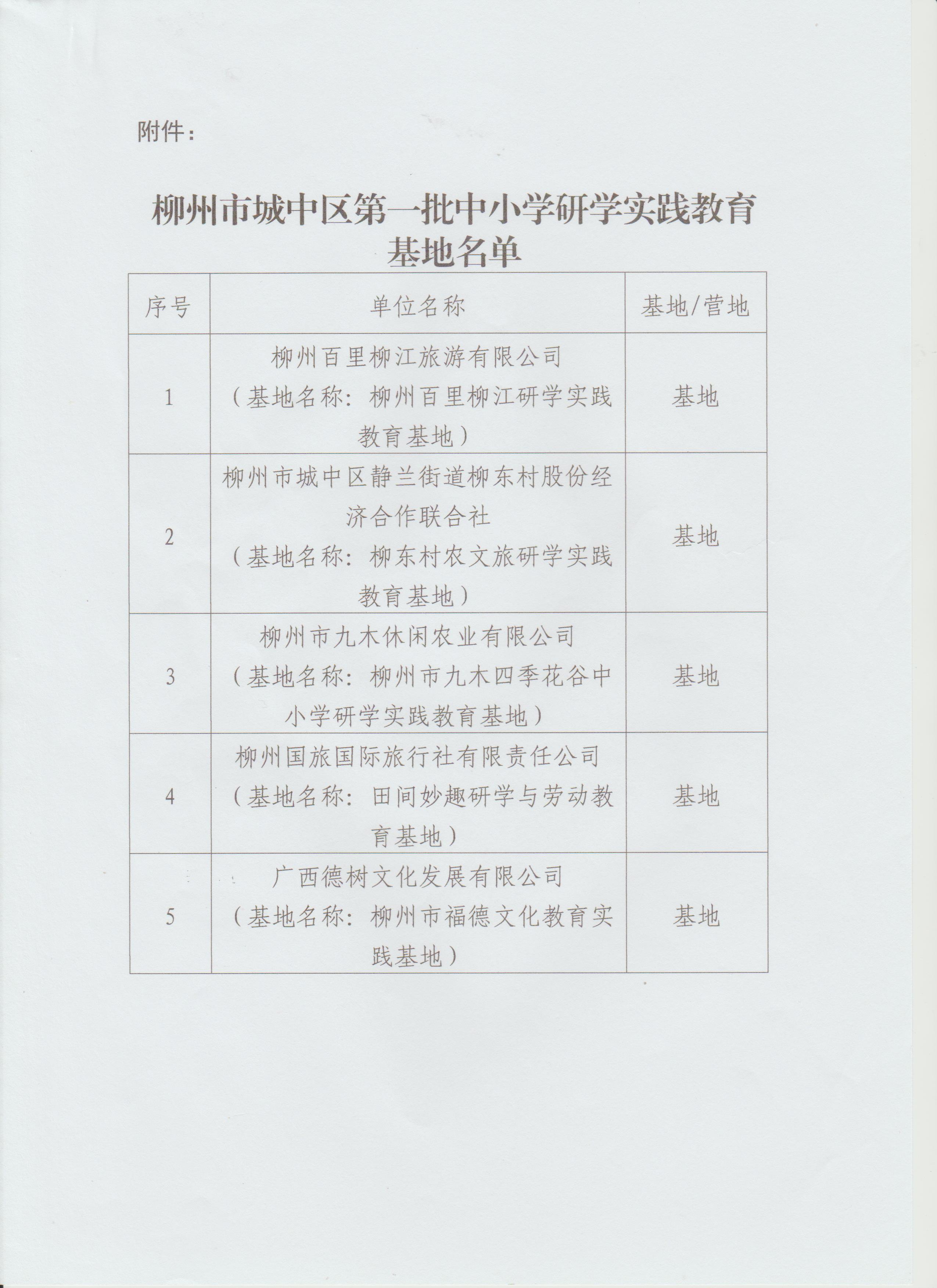 关于公布柳州市城中区第一批校外中小学劳动教育实践基地名单的通知