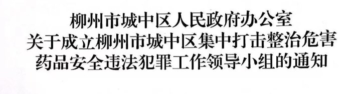 关于成立柳州市城中区集中打击整治危害药品安全违法犯罪工作领导小组的通知