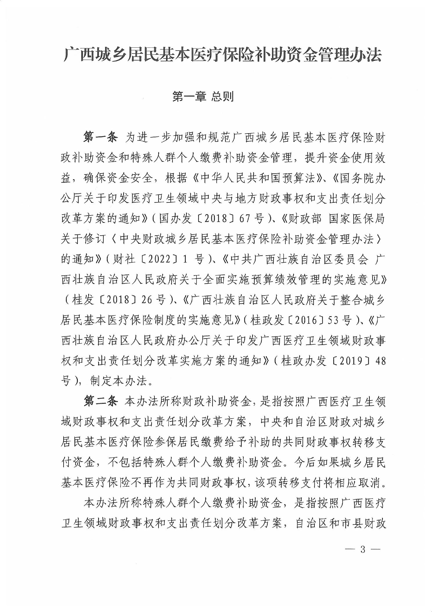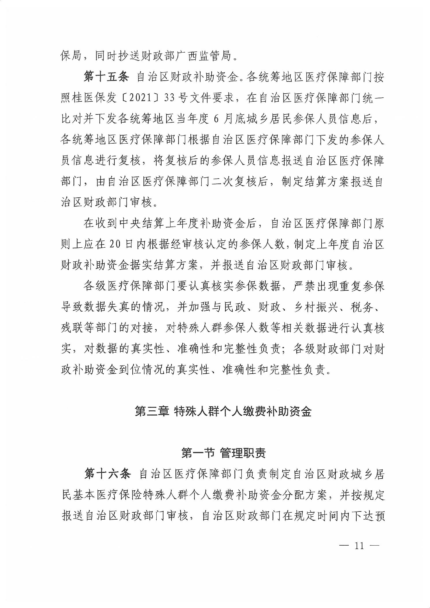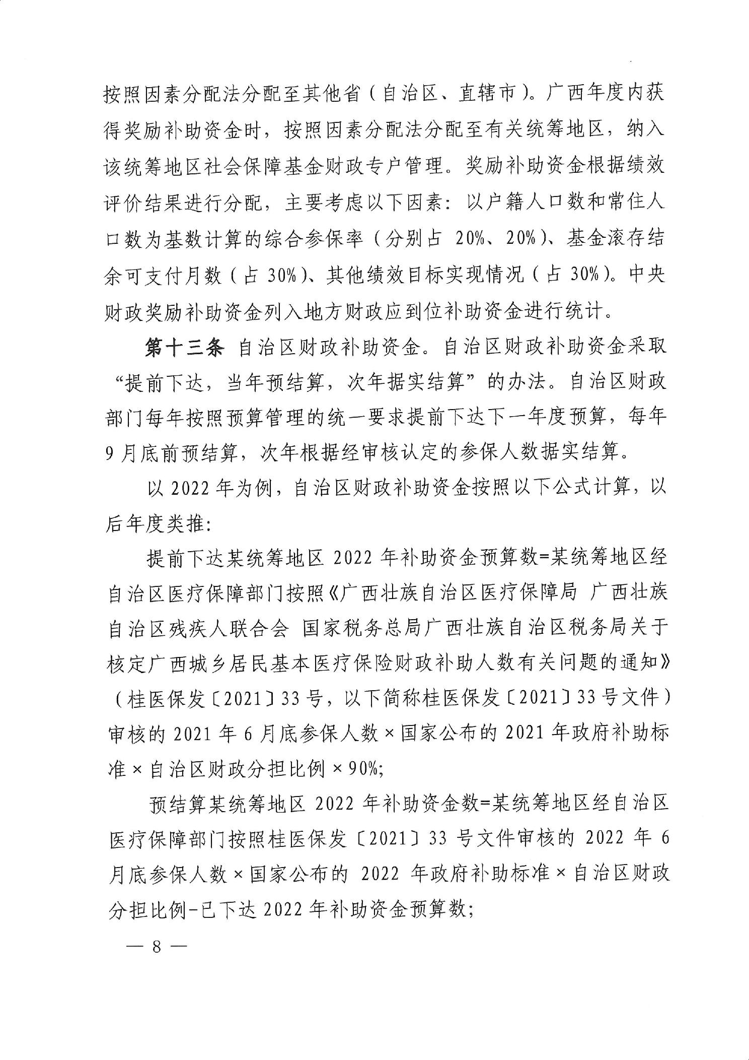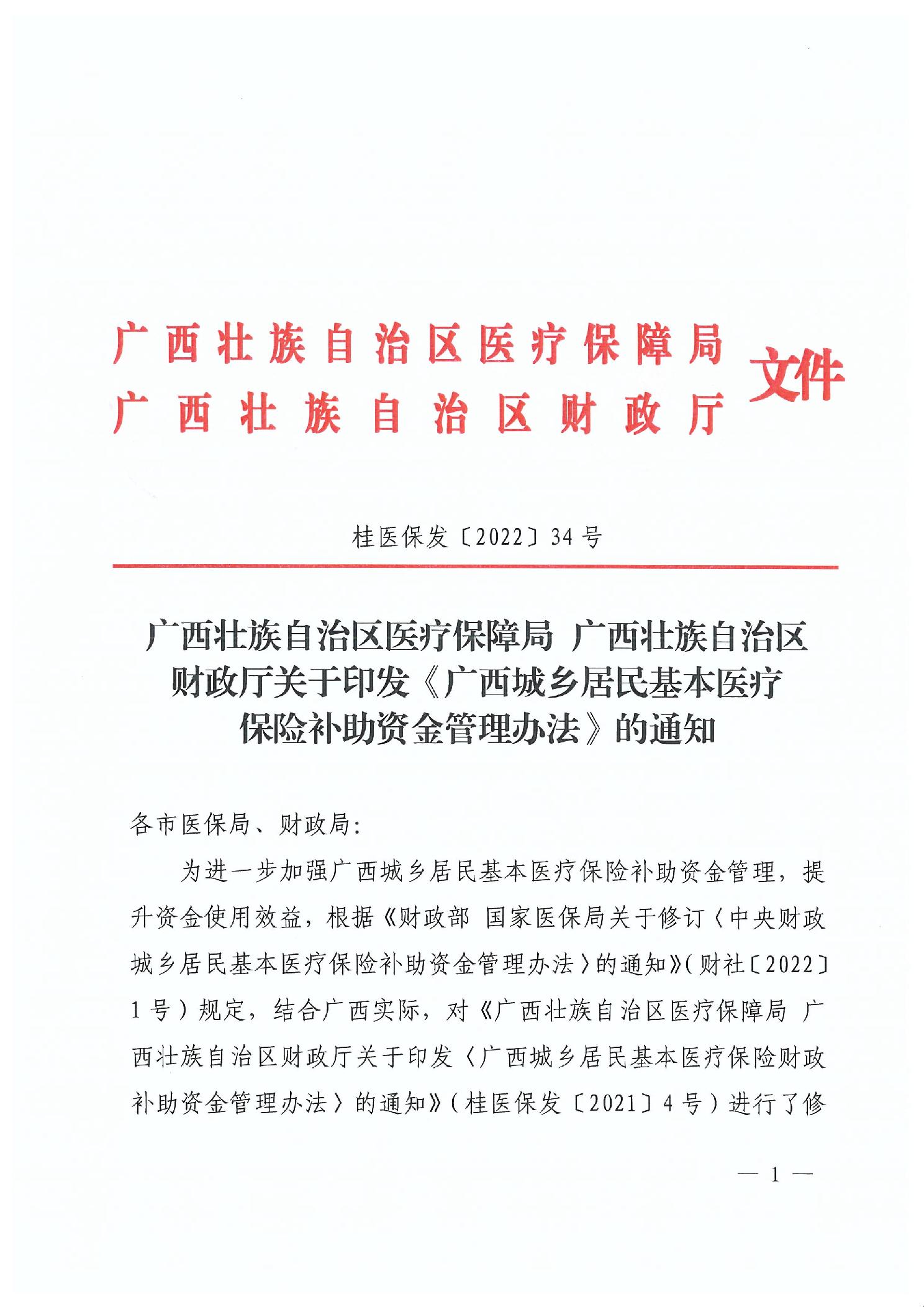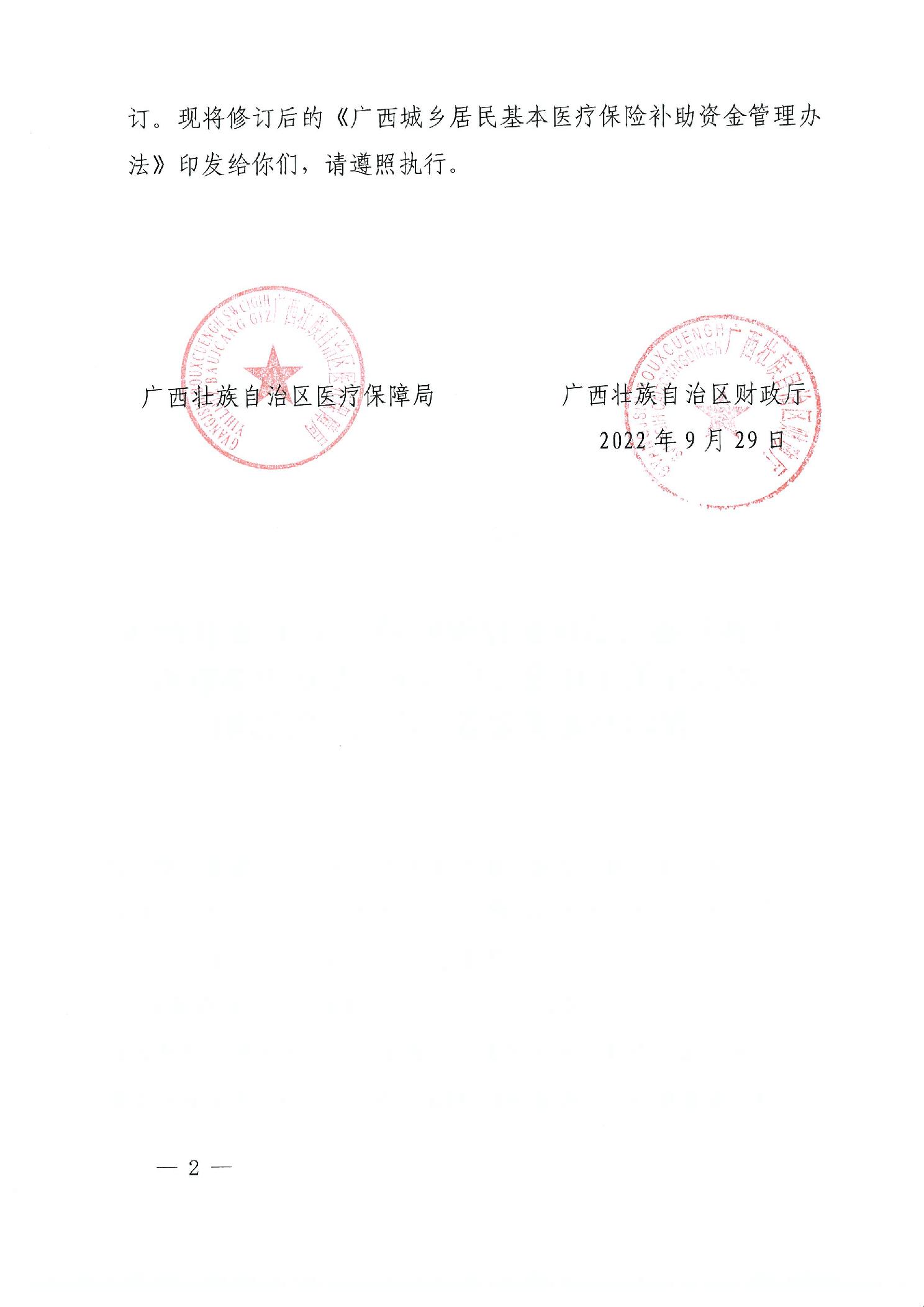 广西壮族自治区医疗保障局 广西壮族自治区财政厅关于印发《广西城乡居民基本医疗保险补助资金管理办法》的通知