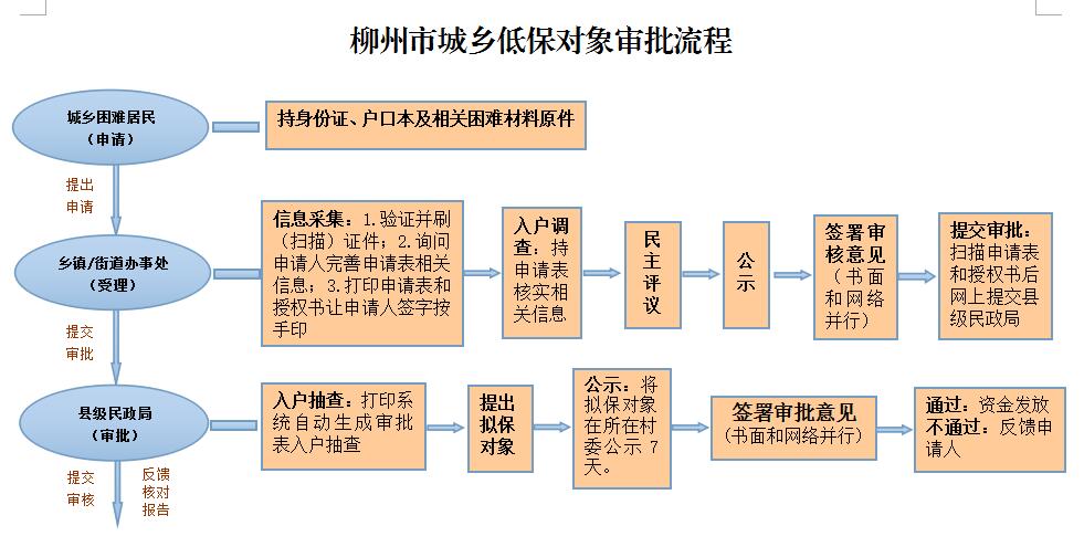 【城中区民政局】柳州市城中区城乡低保对象审批流程图