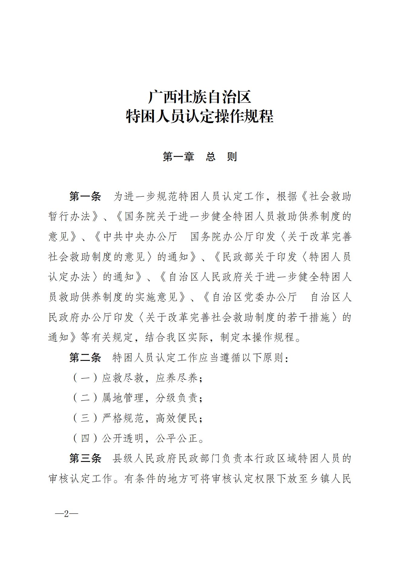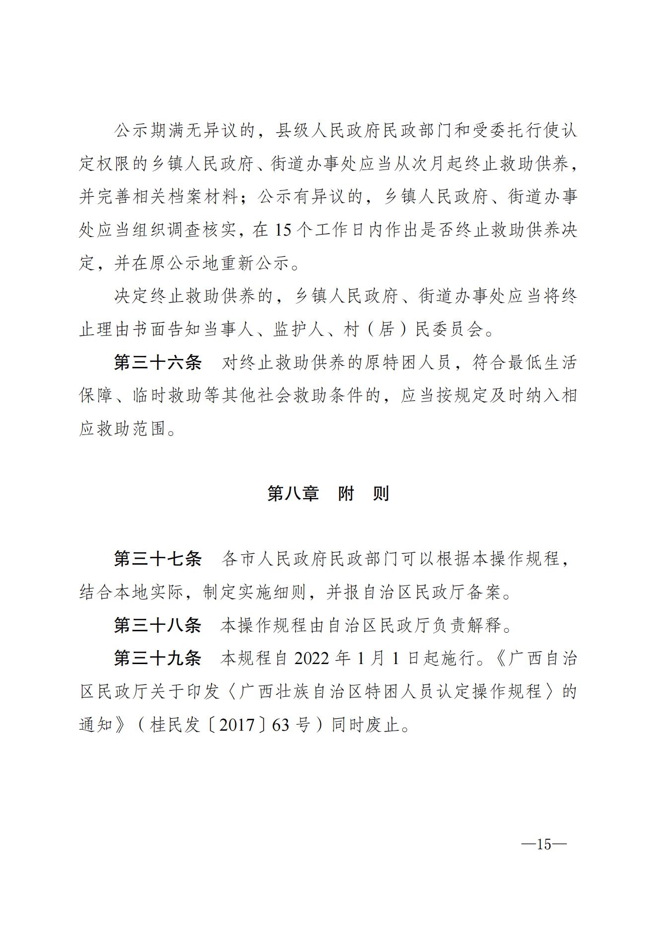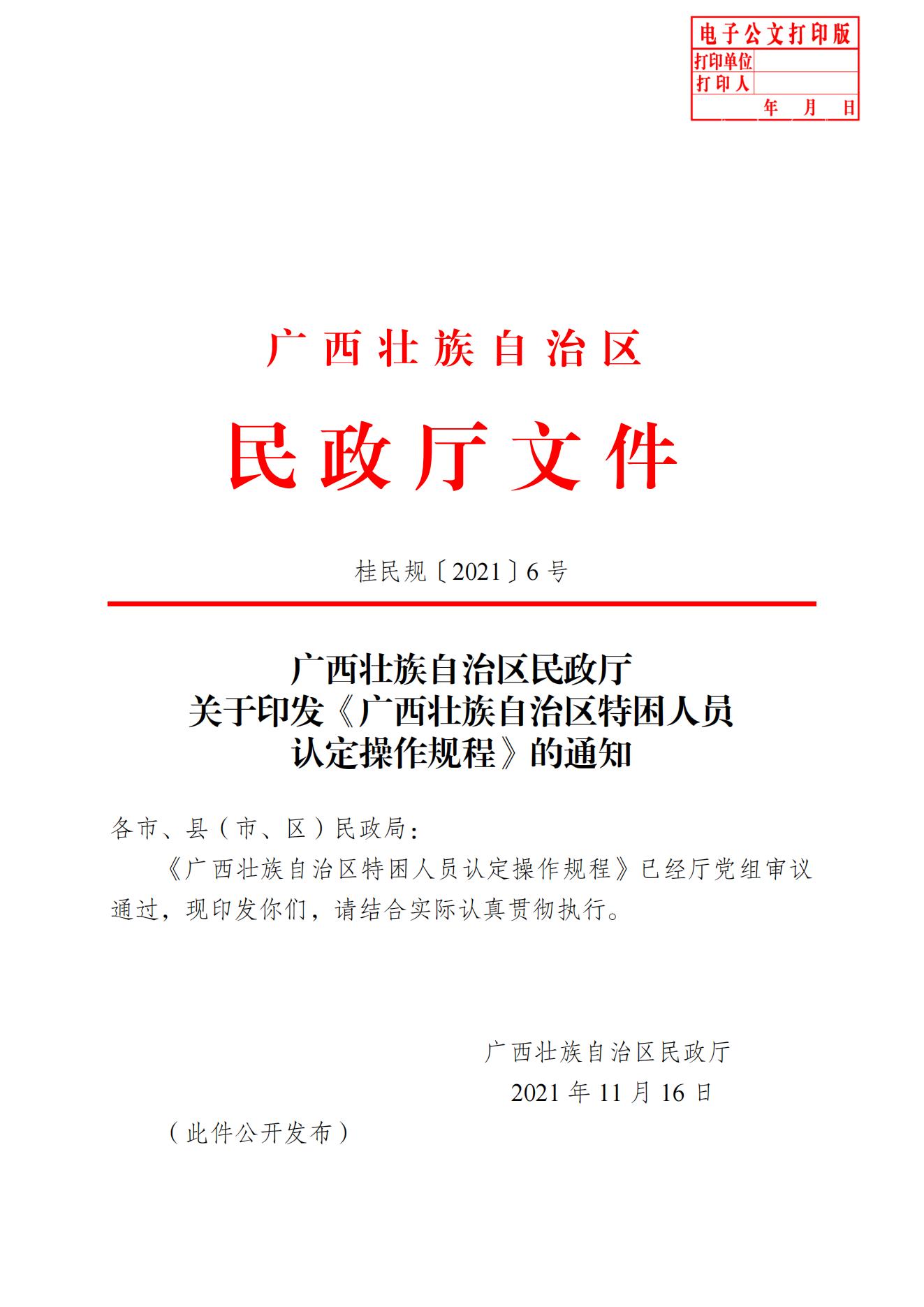 【民政局】桂民规〔2021〕6号广西壮族自治区民政厅关于印发《广西壮族自治区特困人员认定操作规程》的通知