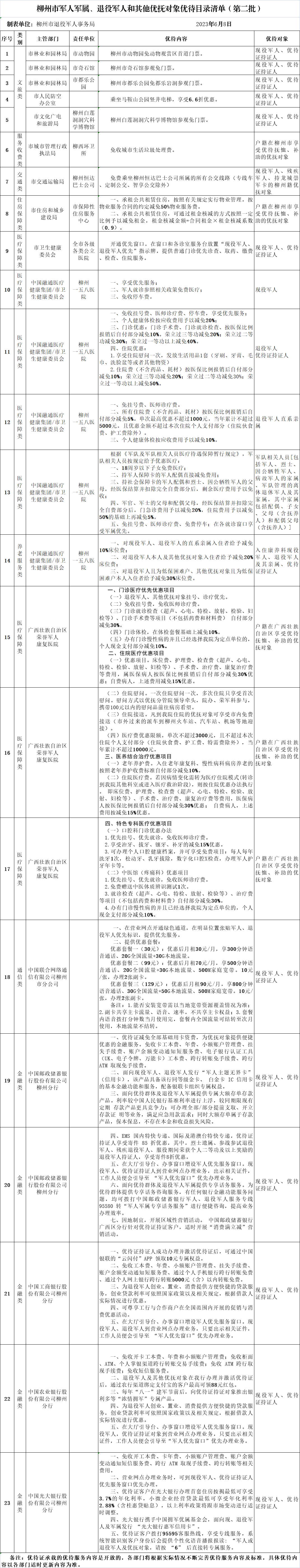 柳州市军人军属、退役军人和其他优抚对象优待目录清单(第二批)