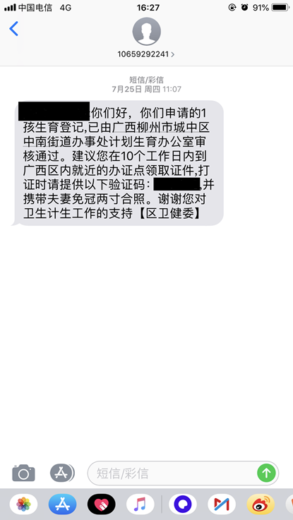 ⑩ 办结后,您会收到一条带验证码的短信,请您持验证码到就近的乡镇或街道办事处卫生计划生育办公室或窗口打印证件,即办结。