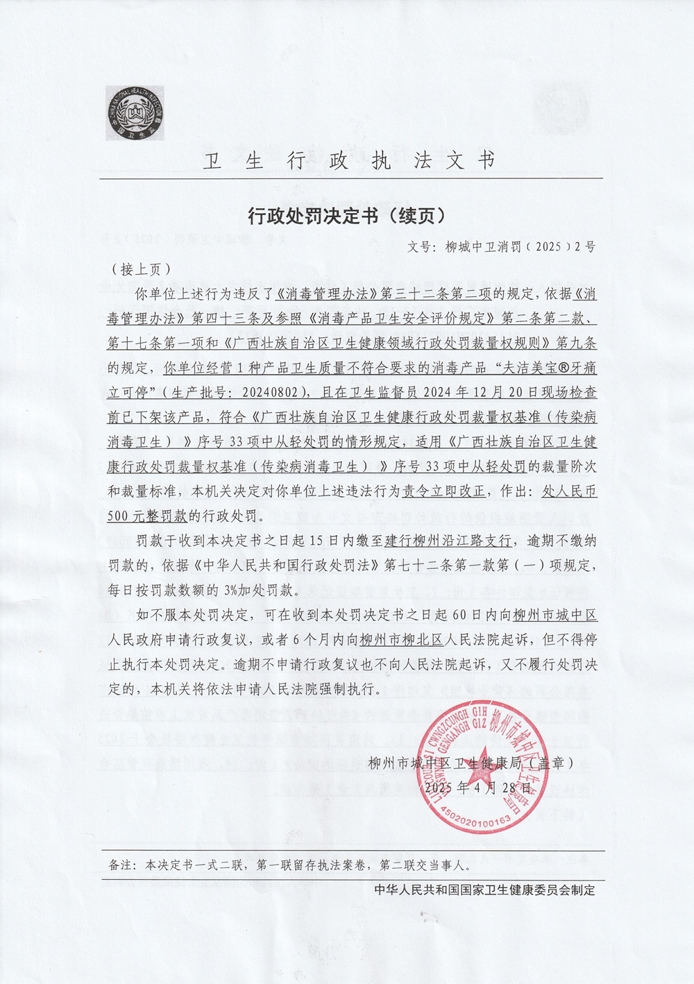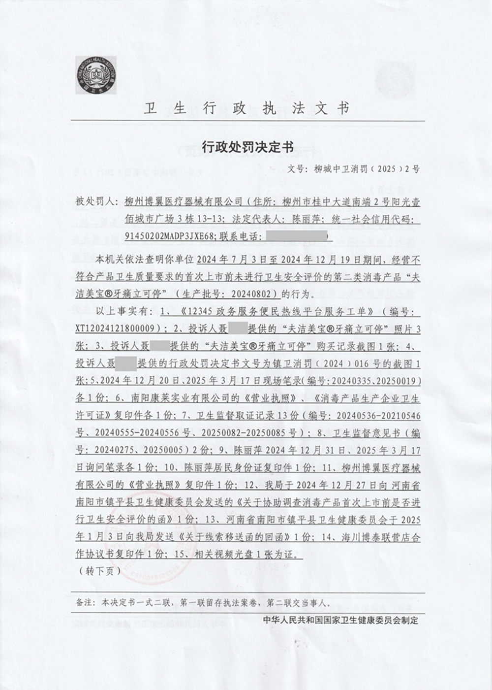 【卫健局】行政处罚决定书(柳城中卫消罚〔2025〕2号)