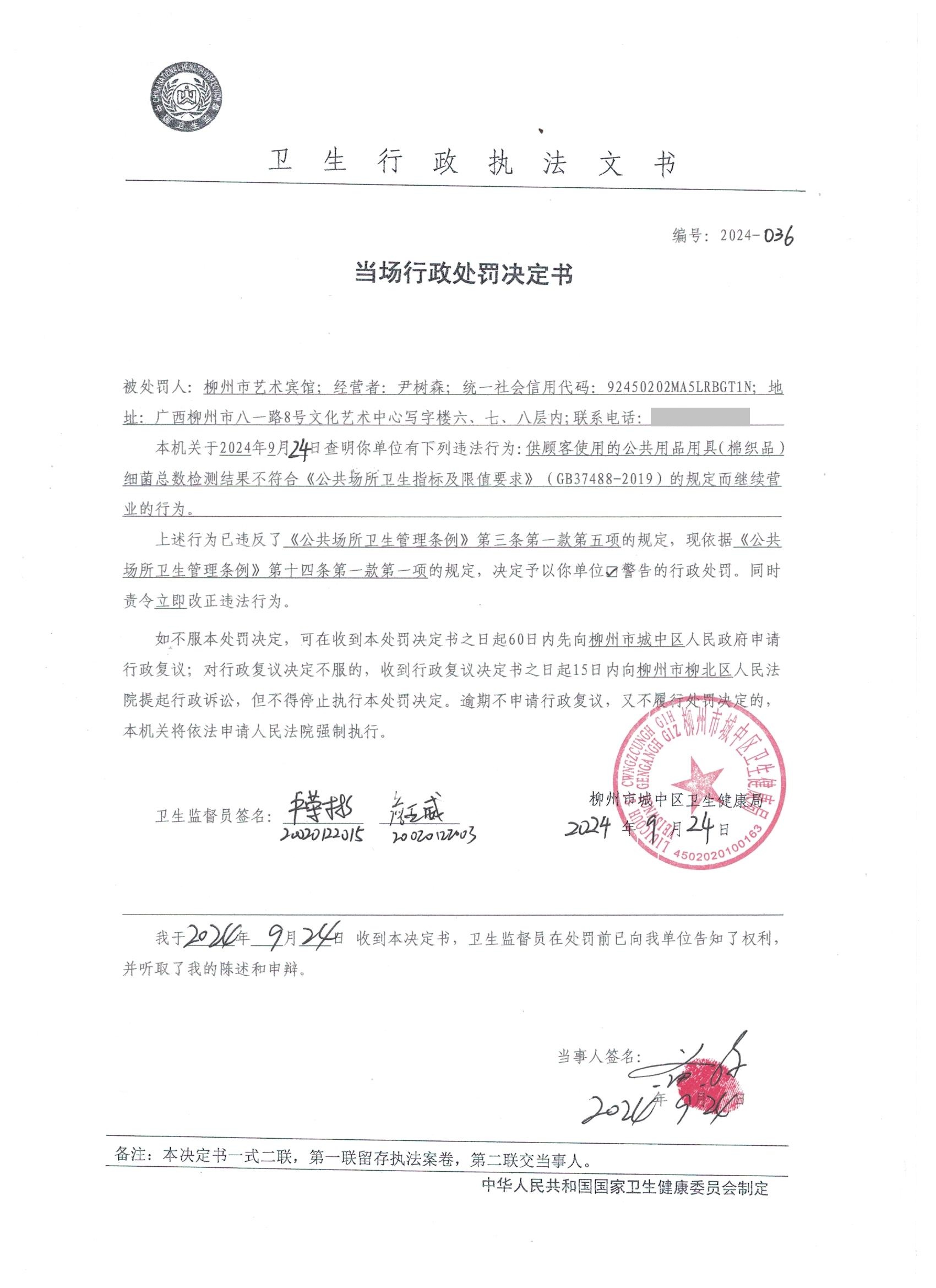 【卫健局】当场行政处罚决定书(2024-036)