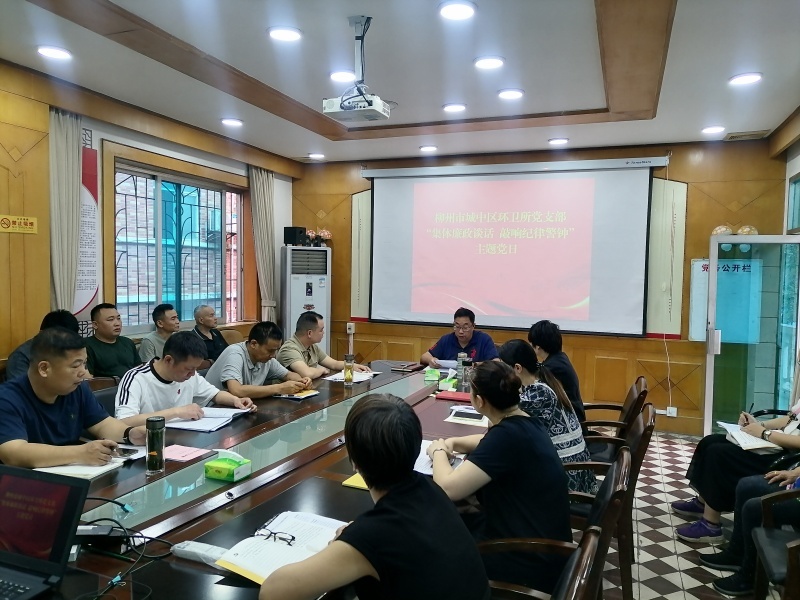 (城中区环卫所讯 通讯员蒋媛报道)为进一步强化党风廉政建设,筑牢党员干部廉洁自律防线。近日,城中区环卫所党支部开展“集体廉政谈话 敲响纪律警钟”主题党日活动。