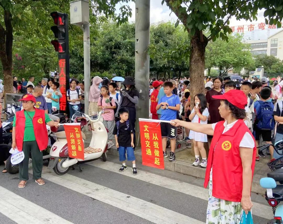 这支队伍的组建源于一场令人纠心的交通事故。去年在紫荆花幼儿园门口,三名放学途中的孩子被疾驰的汽车撞倒,其中一名女孩被撞飞数米远。这一事件深深触动了社区老党员们。“我们虽然退休了,但党员的责任不能退。”在社区党委的号召下,以覃云方为队长的银龄志愿服务队迅速成立,党员带头认领“护学岗”,用行动践行初心使命。