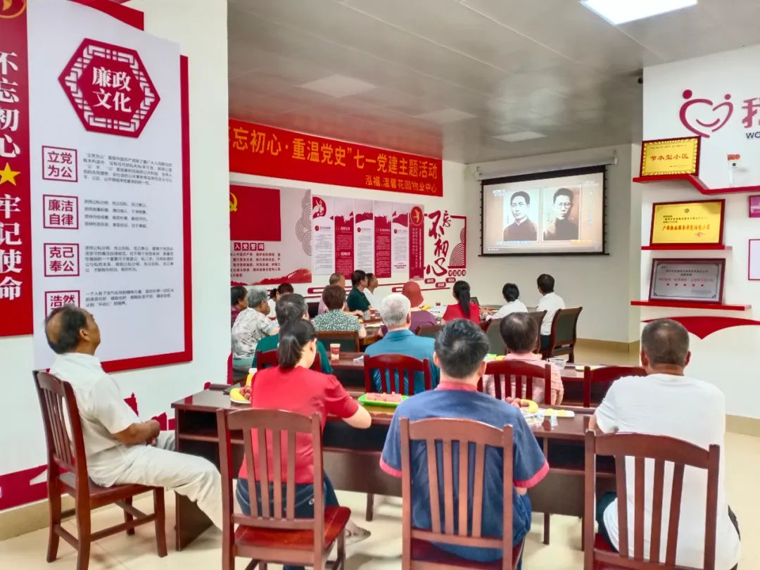 接下来,组织所有党员一起观看《建党精神》,重温党史,观影结束后,进入座谈环节,组织老党员对社区和物业提出宝贵的意见建议,共同商讨更好的服务内容。