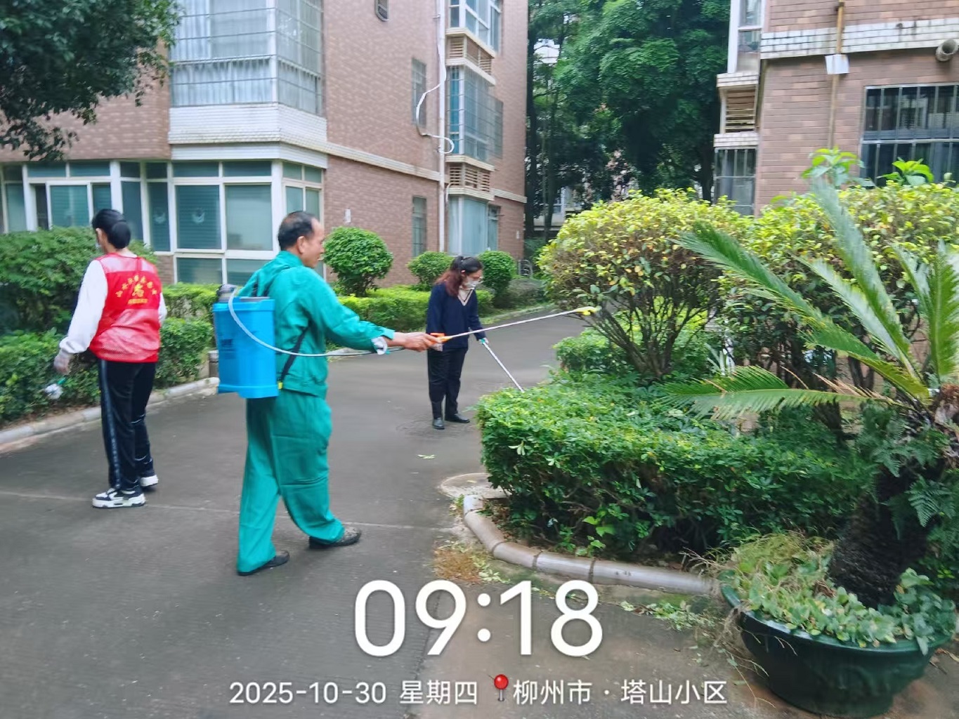 专业消杀与监测:物业公司安排人员,采买消杀药品,参与蚊重点区域消杀工作,对公共区域、卫生死角进行立体化消杀,有效降低蚊虫密度。