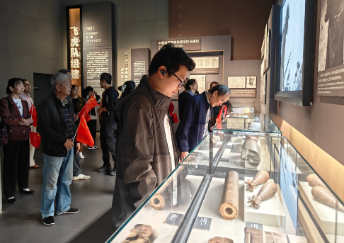 活动伊始,全体党员在展馆前整齐列队、合影留念。随后,党员们跟着讲解的步伐,循着历史脉络,依次参观了柳州抗日战争历史博物馆、飞虎队常设展馆、陆军展厅及国防利剑利民融合展厅。在飞虎队常设展馆,6000平方米的展区内,1000余件珍贵文物、历史照片与场景复原交相辉映,从“飞虎队组建”到“虎啸长空”,从“并肩战斗”到“中国人民没有忘记”,系统勾勒出中美军民并肩抗战的完整历程。声光电技术还原的湘西会战场景震撼人心,让党员们仿佛穿越烽火岁月,深刻体会到革命先辈舍生忘死的壮志豪情。