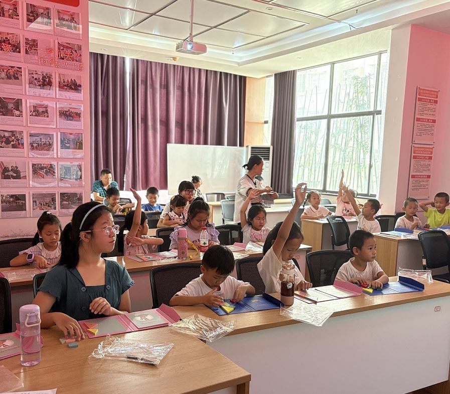 活动伊始,志愿者带领孩子们认识七巧板的几何组件,学习用七巧板拼出“三国”二字及数字“1-3”,并引导他们结合三国典故,如“蜀1”“魏2”等,初步了解三国历史背景。孩子们兴致勃勃,在拼搭中锻炼了手眼协调能力,也加深了对汉字和数字的认知。