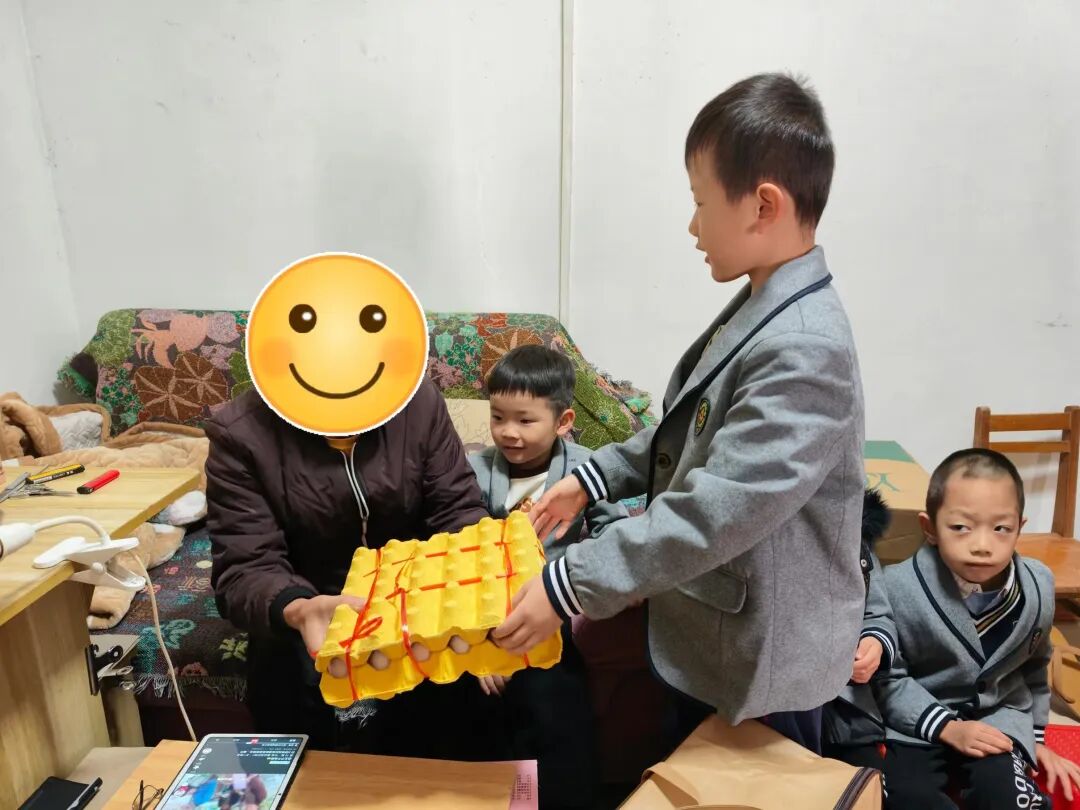 “奶奶,这些鸡蛋很有营养,您要记得吃哦!”一位小朋友小心翼翼地将打包好的鸡蛋递给受助老人说道。老人接过鸡蛋,眉开眼笑,连声道谢。