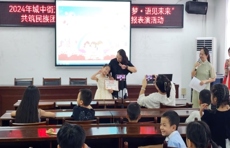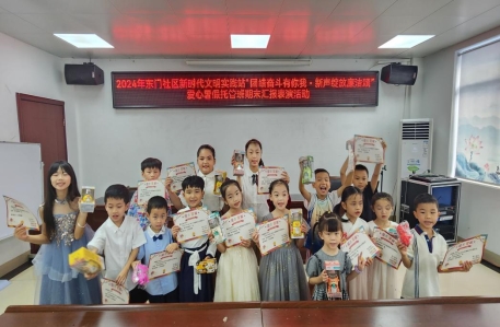 各族人民亲如一家,是中华民族伟大复兴必定要实现的根本保证。实现中华民族伟大复兴的中国梦,就要以铸牢中华民族共同体意识为主线,把民族团结进步事业作为基础性事业抓紧抓好,也是青少年教育的重要内容之一,为了加强社区儿童居民的廉洁教育,开阔文化视野,丰富暑假文化生活,东门社区开展爱心暑假托管班绘画活动,通过各种形式各种内容传递民族团结的理念,使我辖区居民儿童在丰富多彩的暑假文化生活中不断增强对伟大祖国、中华民族、中华文化的认同感。伴随着孩子们的欢声笑语,东门社区暑期班也迎来了结课的日子。为了展示孩子们近两个月的学习成果,暑期班特别举办了一场古诗朗诵汇演。汇演在东门社区新时代文明实践站举行,老师及家长孩子在这齐聚一堂,共同见证这美好的时刻。
