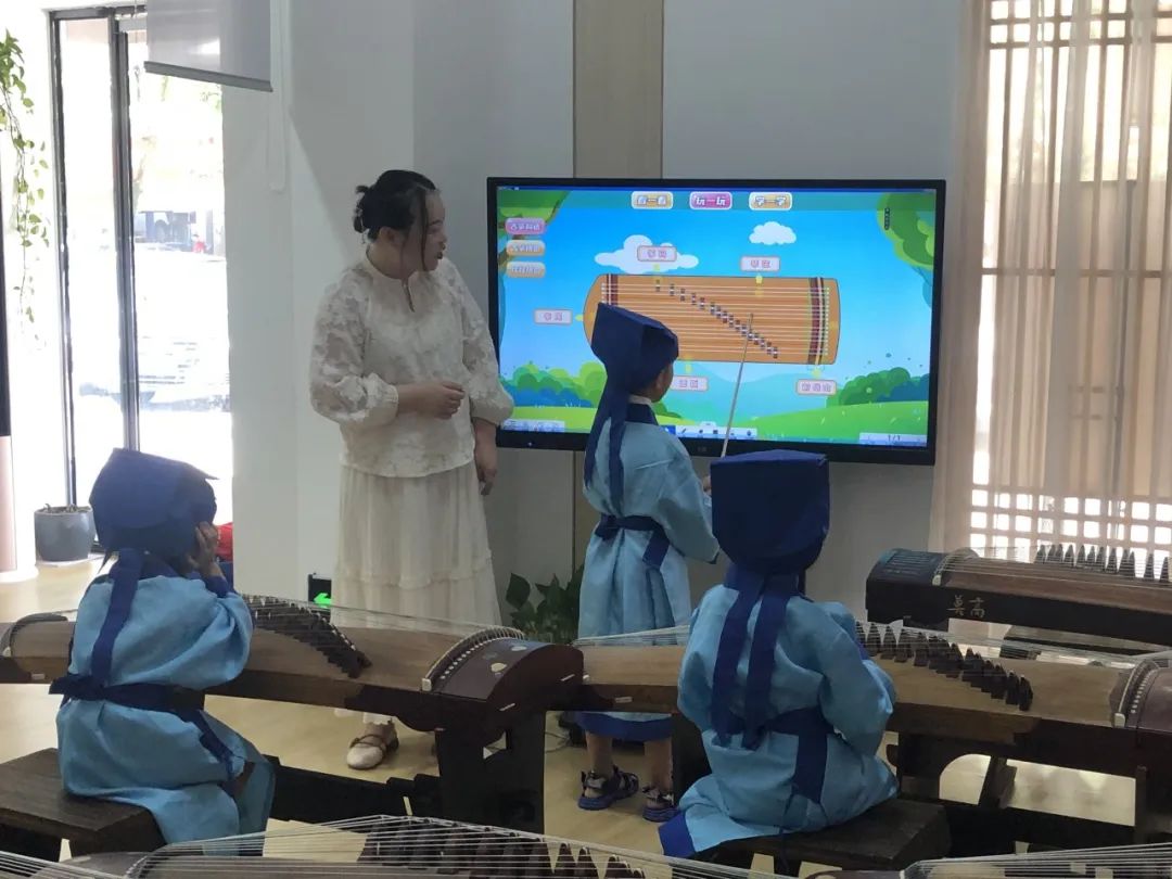 课堂上,古筝老师以一首古筝名曲开场,悠扬的旋律在空气中流淌,时而如高山流水般清澈,时而似春风拂面般温柔,孩子们纷纷沉浸在古韵悠长的古筝音色中,对接下来的古筝教学跃跃欲试。