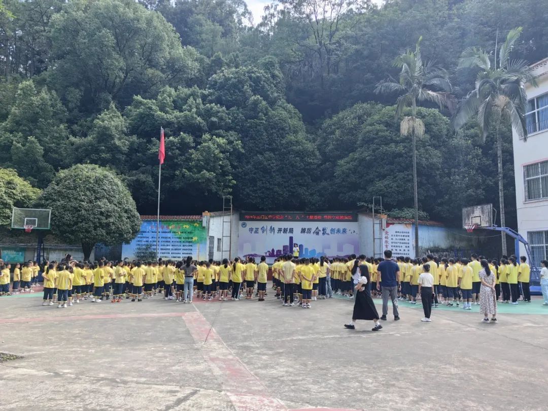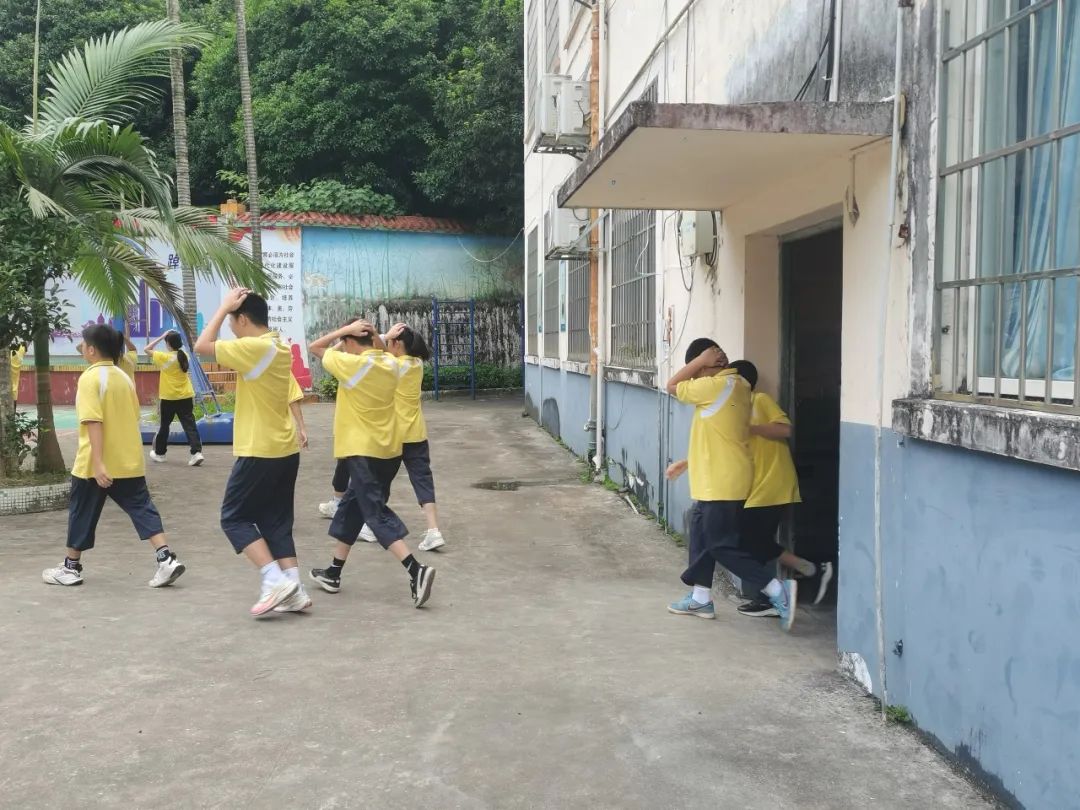 “防空警报”响起,各负责疏散的带班老师组织学生沿预先确定好的应急疏散路线快速有序疏散。学生疏散时用手抱住头部,压低身体快速、冷静、有序的撤离危险地带到达安全集合地点。随后各班主任及时清点人数,报告人数。“解除警报”响起后,三门江中学梁文澍校长对本次疏散演练进行点评,还进行了“9.18”事件的回顾,让学生们铭记那段屈辱的历史,激发学生的爱国热情。
