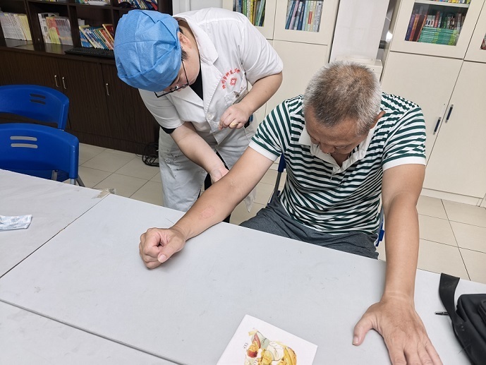 活动现场,来自柳东卫生院党员医护团队为居民提供了中医问诊、体质辨识、健康咨询等服务,并针对颈椎病、关节炎、失眠等常见病症,开展了艾灸、拔火罐、针灸等中医特色疗法体验。医护人员耐心解答居民疑问,结合个体差异给出调理建议,还向群众普及了中医药养生知识和季节性防病要点。“我这肩膀疼了好几个月,今天医生帮我针灸后轻松多了,感谢党和政府把服务送到家门口!”社区居民李阿姨连连称赞。