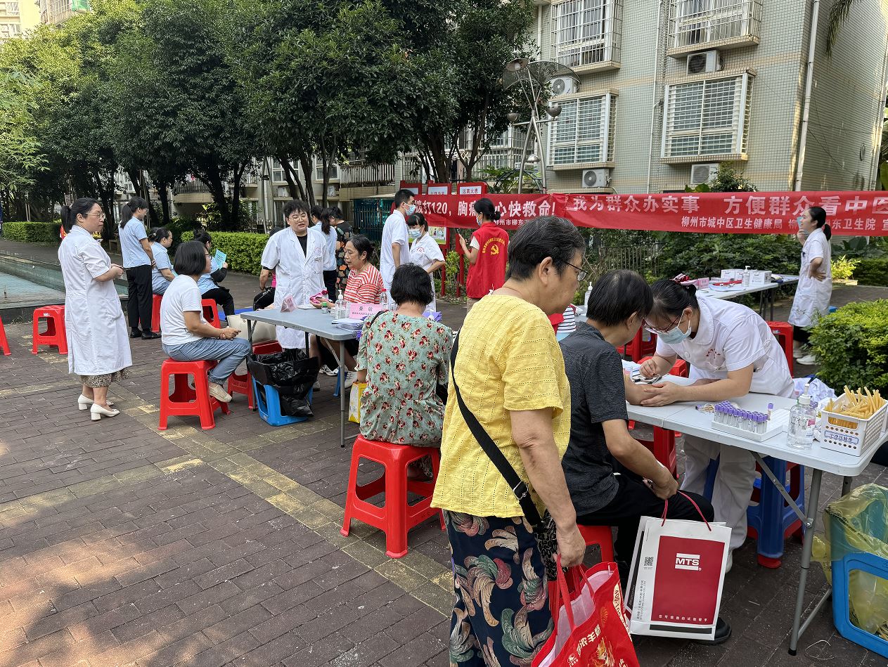 活动中,柳东卫生院的医务人员通过开展健康知识宣讲,向辖区居民进行心肺复苏及除颤仪的操作培训,普及家庭急救知识,以及现场解读体检报告及用药指导等相关医疗咨询服务。并提供量血压、测血糖等免费的健康体检,进行针灸等中医部分项目体验,此外,社区工作人员还通过向群众讲解清廉的重要性和内涵,引导大家树立正确的价值观和道德观,宣传廉洁从医的相关政策和规定,发放清廉宣传资料,倡导大家共同监督医疗服务行为、监督社区建设服务,保障自身合法权益。