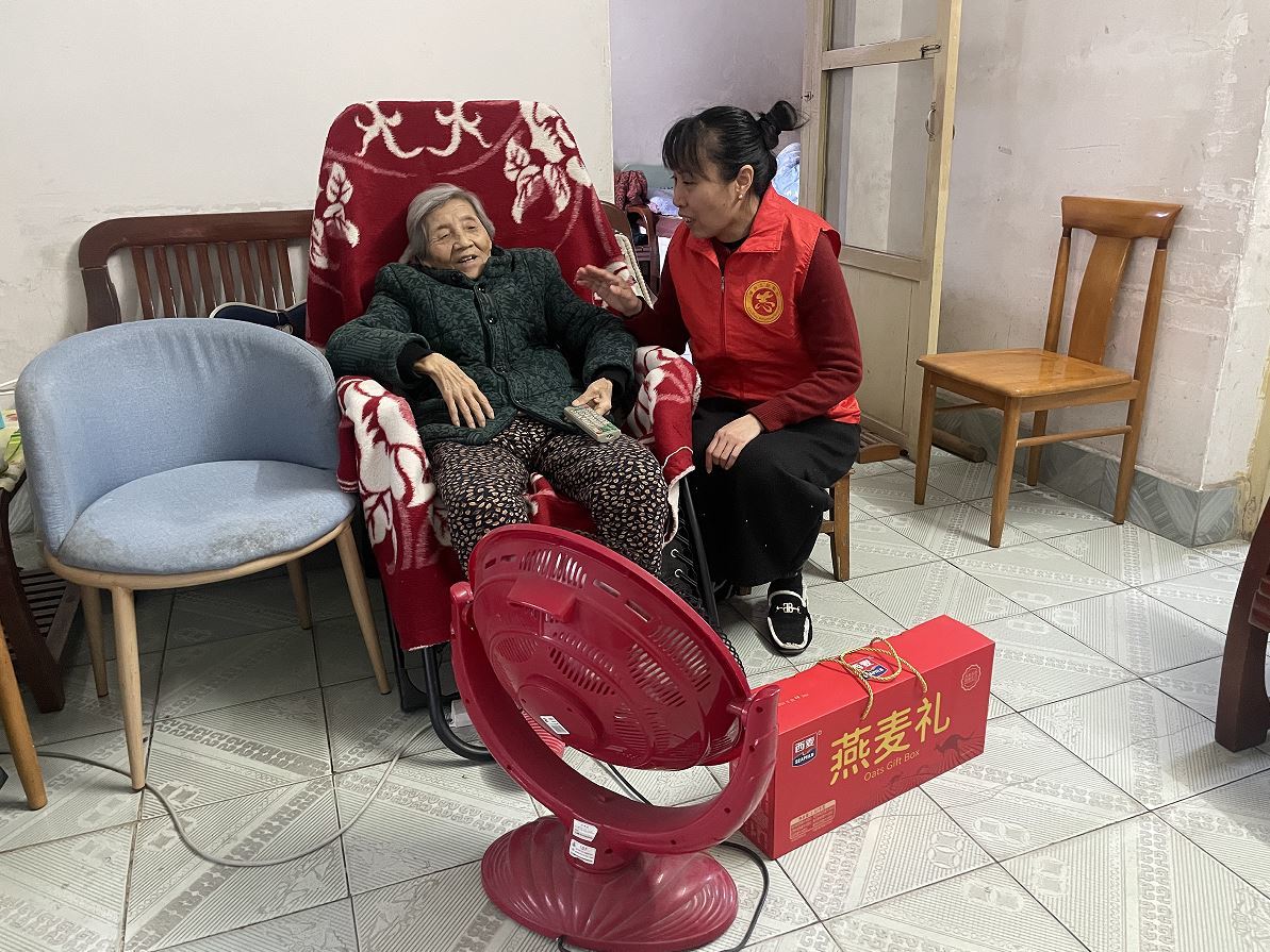 88岁的程阿姨,在社区里人缘极佳,平日里热情参与各类社区活动,与邻里相处融洽。前段时间,她因骨质疏松症在医院接受治疗,术后恢复牵动着社区工作人员的心。得知程阿姨出院,社区第一时间安排了此次探望。