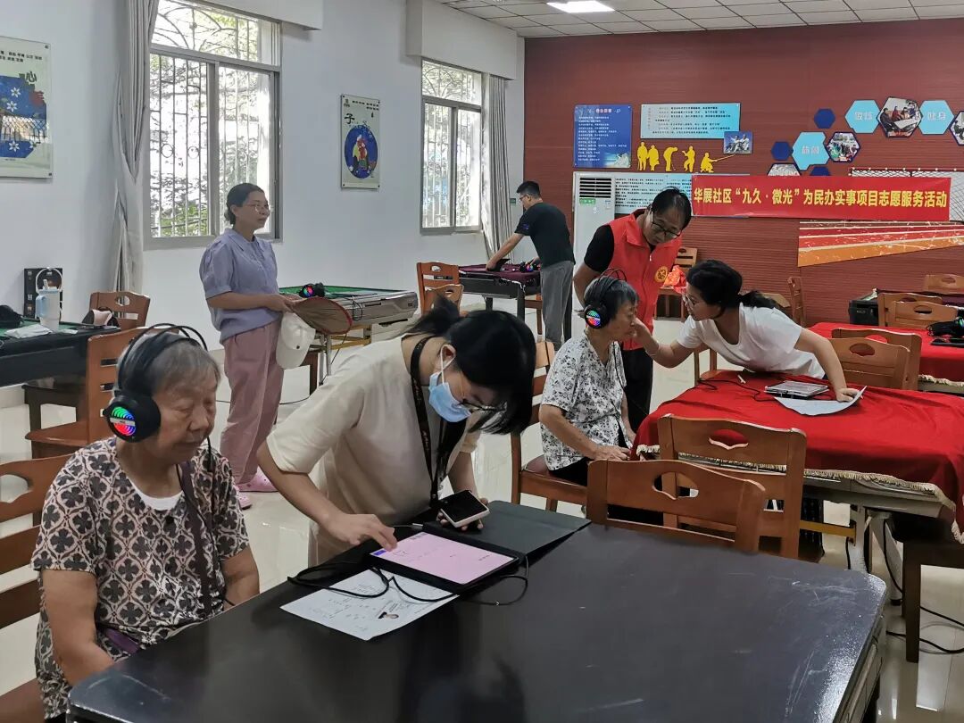 为弘扬尊老敬老传统美德,切实提升社区老年人健康福祉,2025年9月19日上午,华展社区联合柳州市残疾人康复中心、静兰军休所共同开展“华展万家 乐享银龄”关爱老年人系列活动之听力障碍免费检测与筛查专场,在西江路55号基建大院活动室为辖区约40名老年人提供专业听力健康服务,用实际行动传递温暖与关怀。