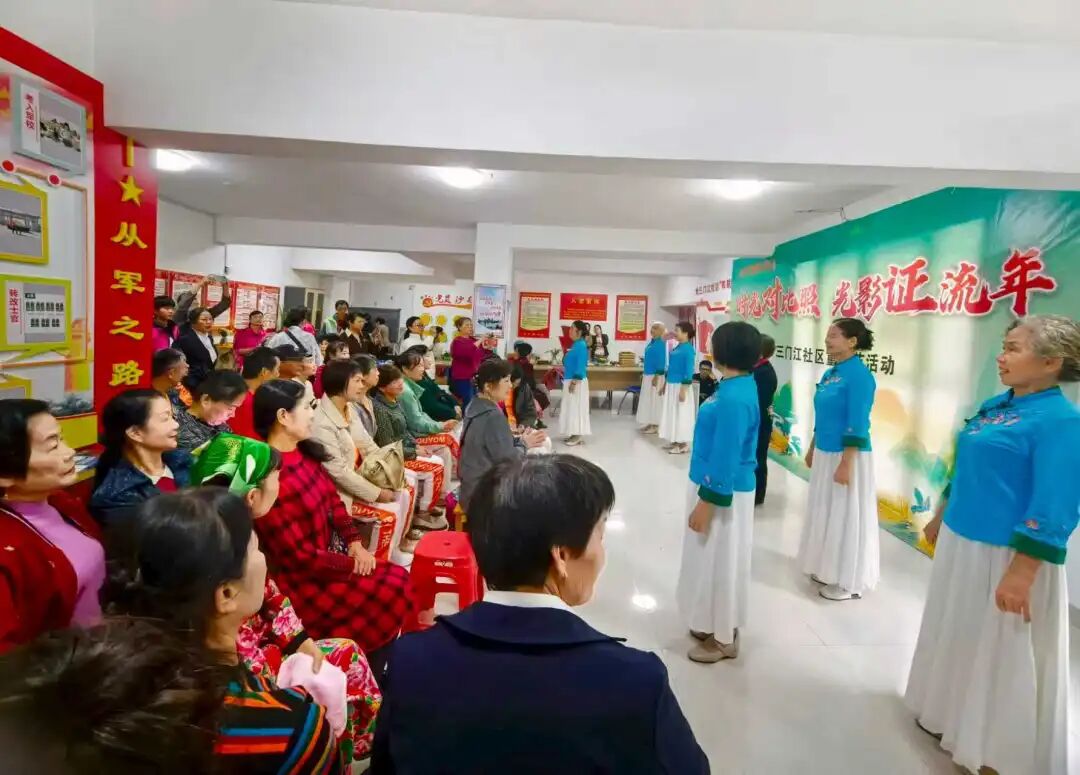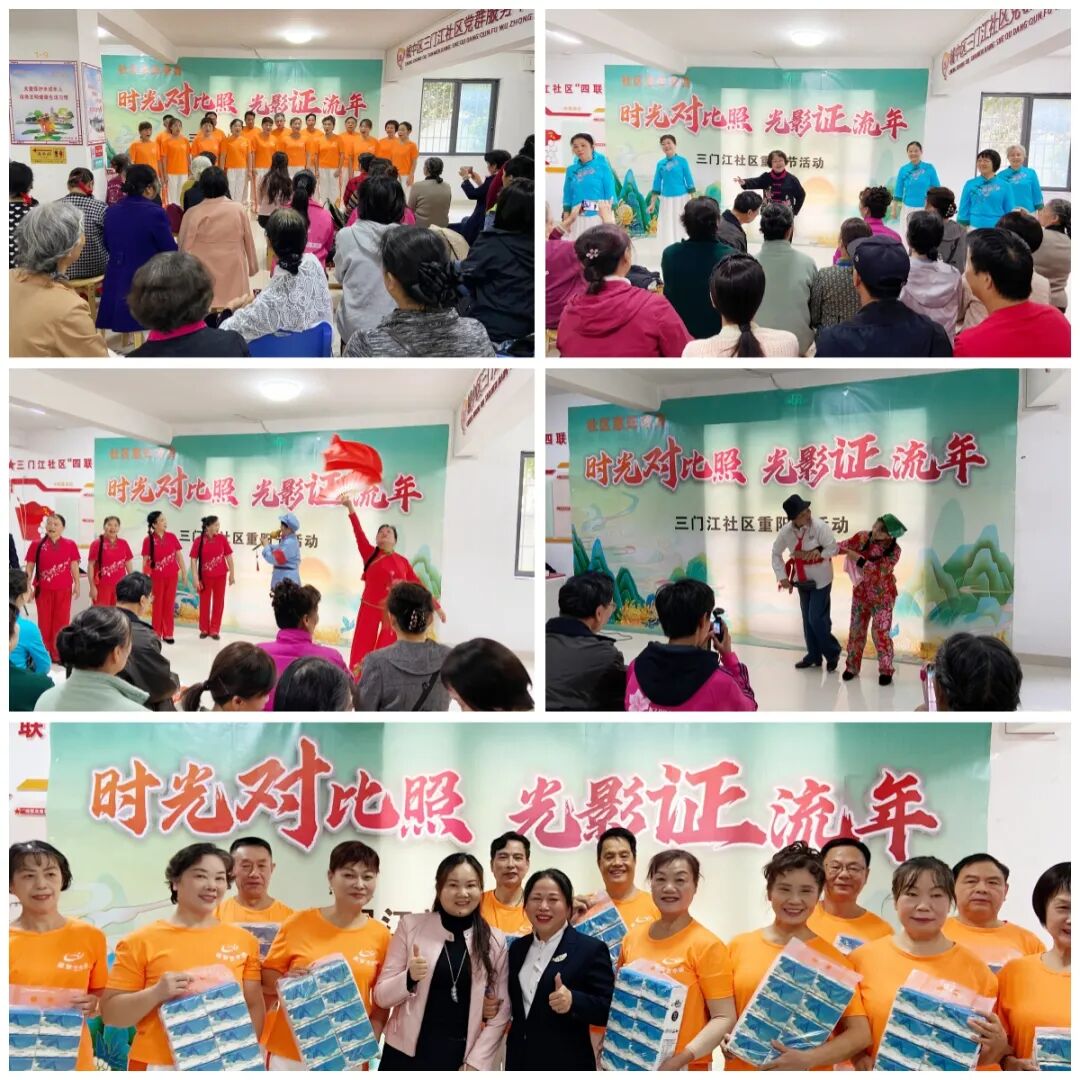 10 月 24 日,三门江社区活动室内暖意融融,处处洋溢着温馨祥和的氛围。一场以“时光对比照 光影证流年”为主题的重阳节活动在此温情启幕。社区以“镜头定格时光、才艺传递温情”为核心,精心策划并组织了一系列特色环节,让辖区内的老年朋友们度过了一段满含记忆温度、充满欢声笑语的美好节日时光,更将尊老敬老的传统美德深深融入基层服务的实践之中。