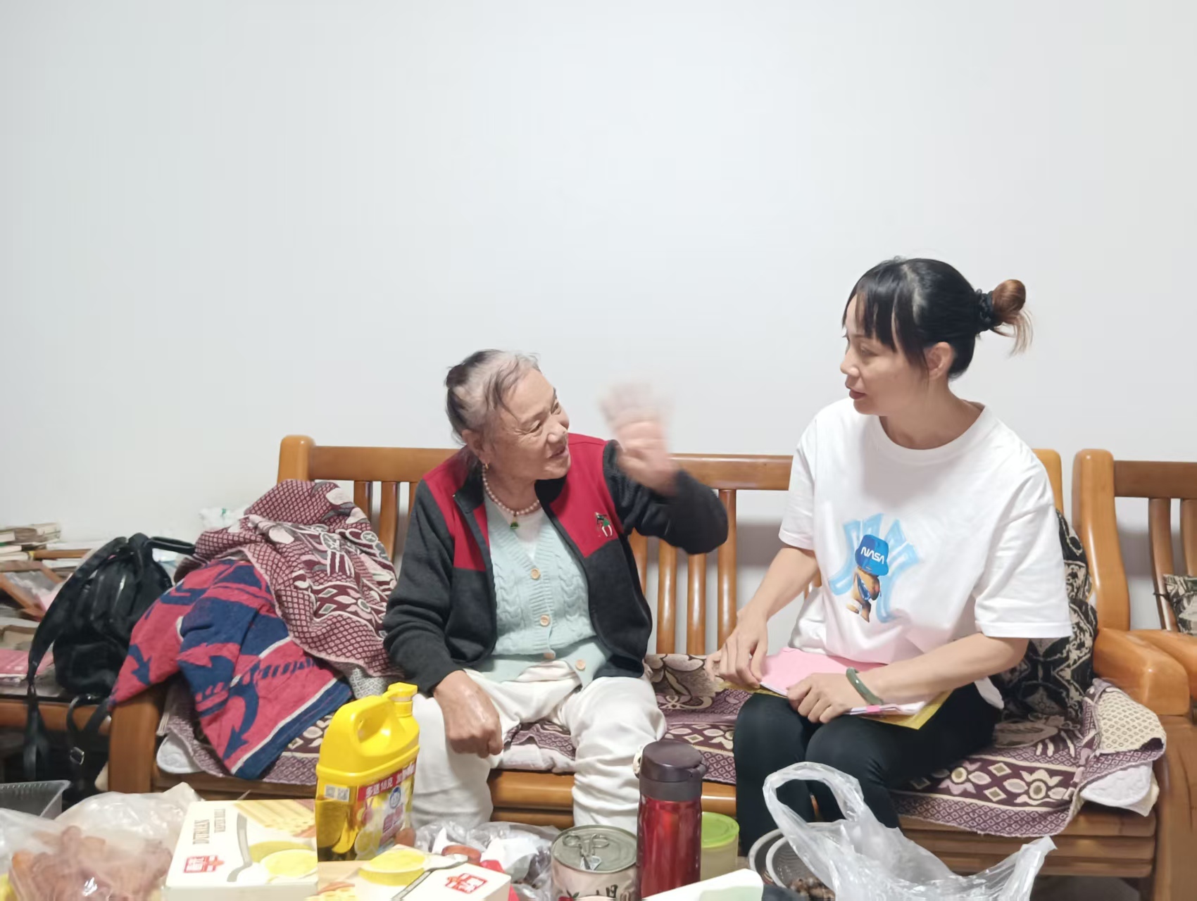 走访过程中,社区工作人员与老人促膝交谈,详细了解她们的身体、生活状况,认真倾听老人们的心声与诉求。针对老年人关心的长者食堂、反诈防骗、基孔肯雅热防治等问题,工作人员现场进行耐心解答。同时提醒她们注意秋冬季节保暖防寒,注意用电、用气安全。