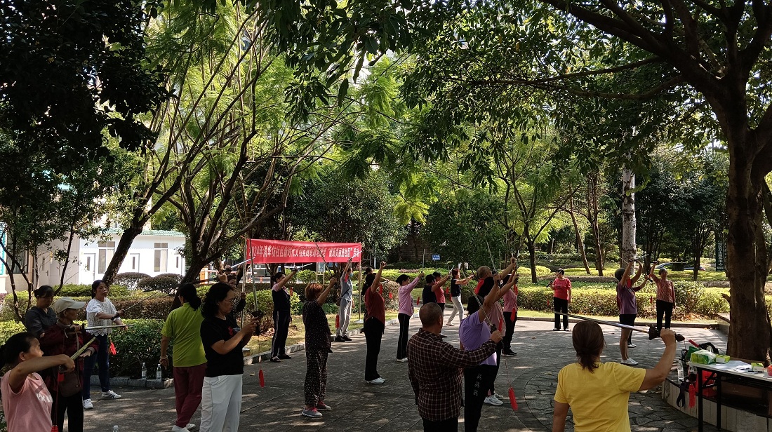 太极健身活动现场,老师首先为老人们展示了陈式太极剑49式,然后耐心讲解每个动作,大家认真学习、反复练习、仔细揣摩动作要领,在一招一式中感受太极剑的精髓,体验太极修身养性、陶冶情操的魅力。通过学习舞动太极剑,展现了社区居民良好的精神风貌和积极向上的“精气神”。