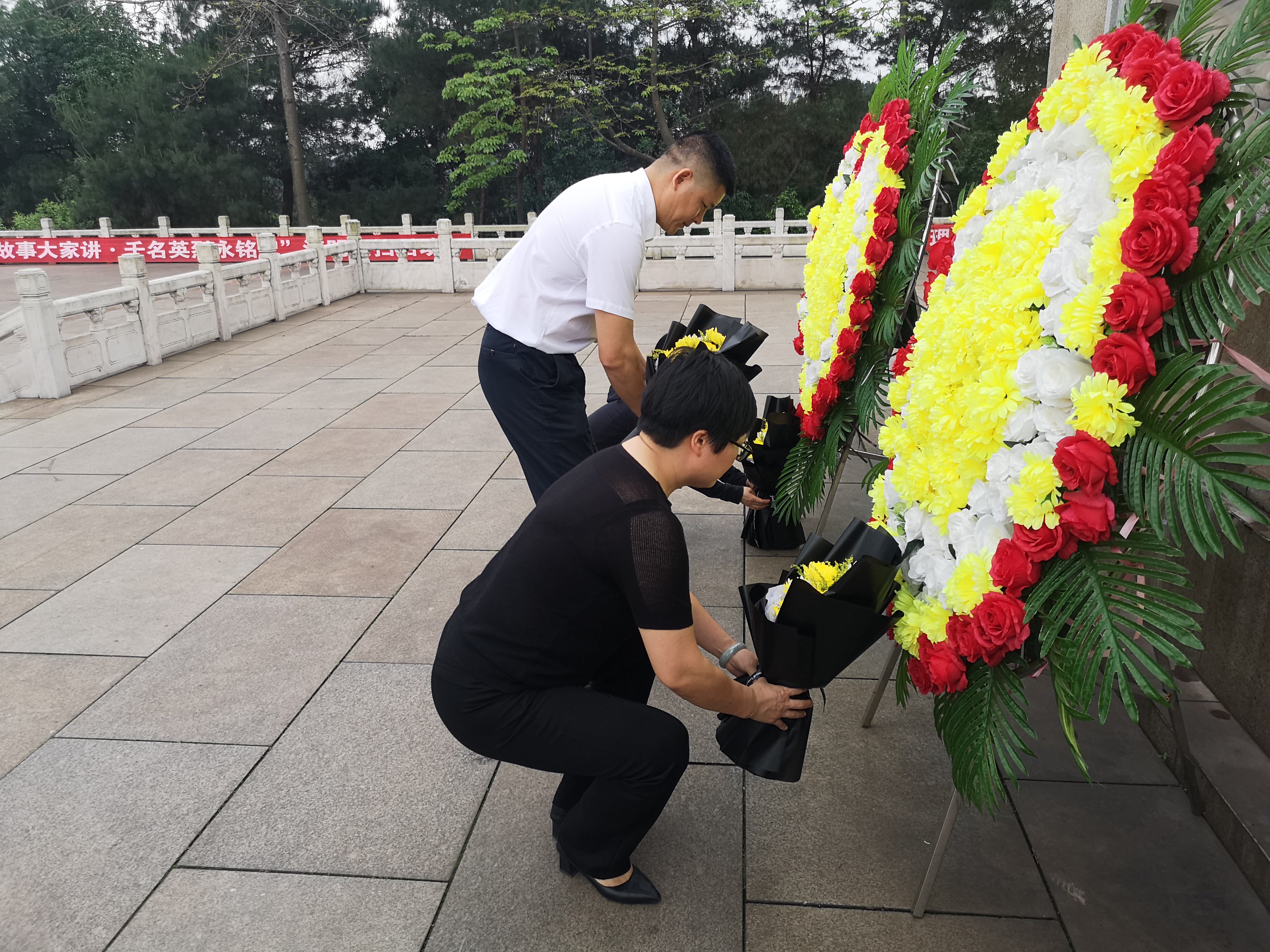 最后,党员有序排队绕烈士纪念碑环行一圈,来到烈士的墓碑前,大家将手中的菊花,庄严地献给革命先烈并鞠躬,共同表达对革命烈士崇高精神的无限敬仰与追思。