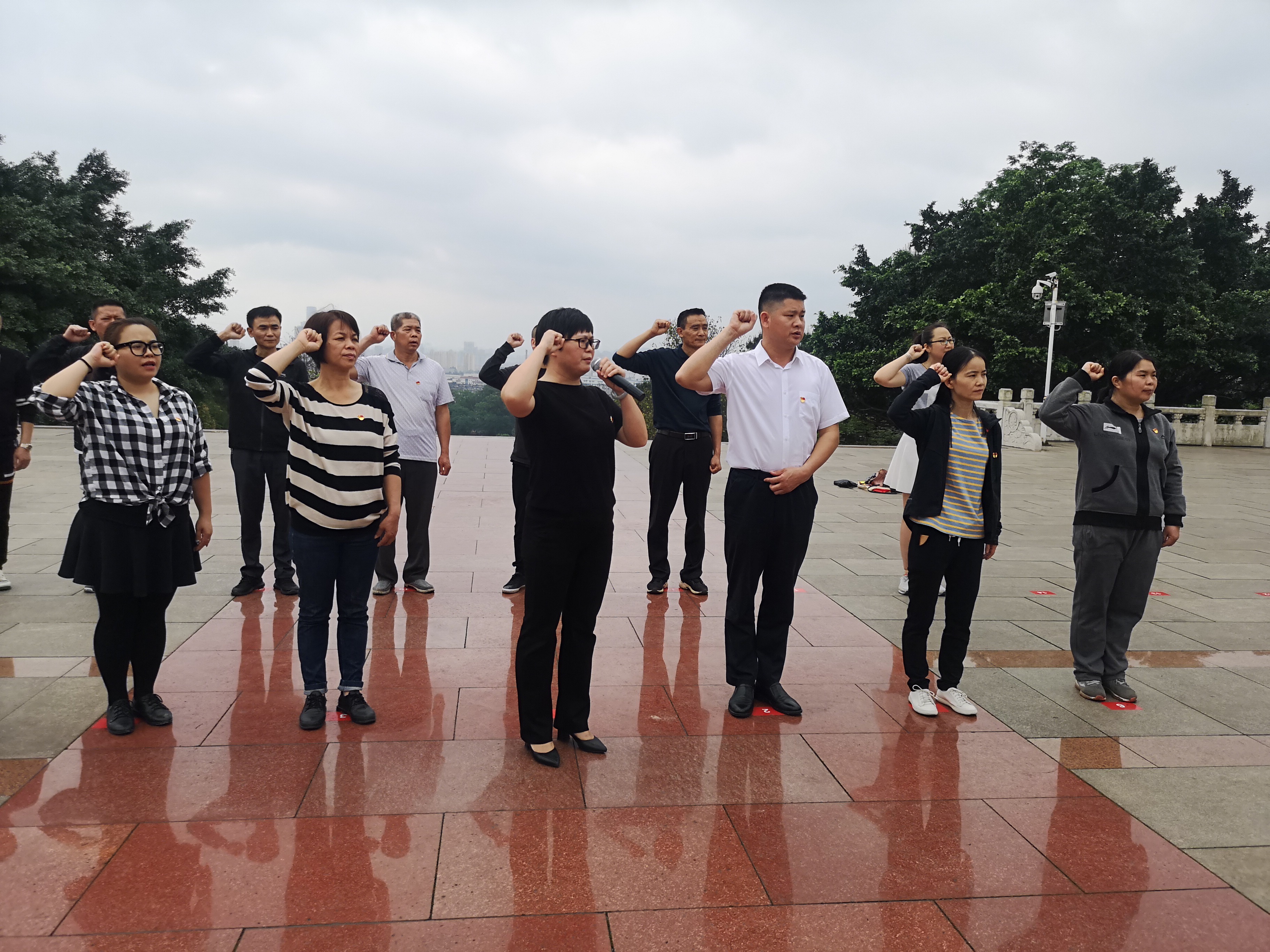 党员们怀着崇敬的心情来到柳州市烈士陵园烈士纪念碑前,全体党员肃然起敬,合唱中华人民共和国国歌,在烈士纪念碑前集体默哀一分钟后,支部班子代表全体党员向烈士纪念碑献上鲜花,缅怀先烈,寄托哀思。随后,由支部书记聂晨同志带领全体党员干部重温入党誓词,表达对共产党的忠诚、对烈士的敬仰。