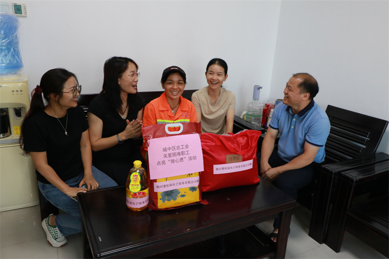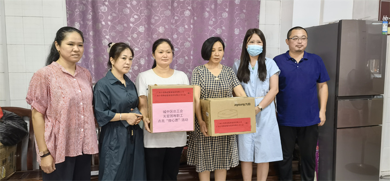 2022年8月1日,柳州聚桂福电子商务有限公司负责人在城中区总工会亲自将爱心物品——恒源祥羊绒被、桥米、鲁花花生油交到了韦志群的手上。8月3日,广西中秀物业服务集团有限公司负责人在中山西中转站爱心驿站将爱心物品——电压力锅交到李清媛手上。韦志群和李清媛接过爱心企业传递的物品,深受感动,表示将更加努力工作,回报党和政府的关怀和社会温暖。