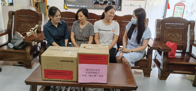 广西中秀物业服务集团有限公司与困难职工李清媛在中山西转动站爱心驿站座谈