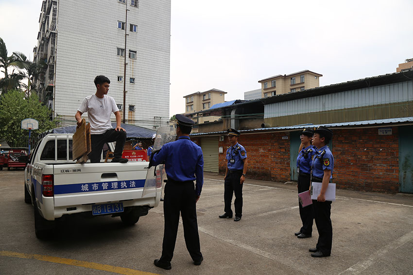 (城中区执法局讯 通讯员邓湖广报道)“扣我的东西,哪个都别想好过……”9月20日,城中区城管执法局河东中队驻地,一名小贩突然冲上一辆执法车,手持板凳跟数名城管人员对峙,现场气氛一片紧张,难道是暴力抗法?然而这其实是一个演练中的场景。当天下午,城中区城管执法局开展了一场规范化执法,应对突发事件的实战演练,并邀请了全市各城区城管执法局到现场观摩和指导。