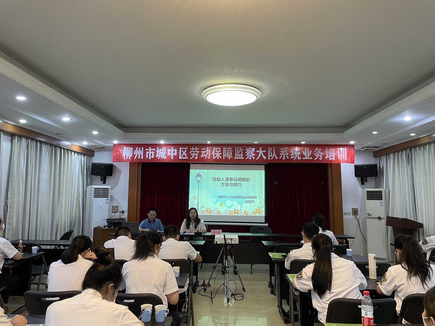 本次培训特邀柳州市人力资源和社会保障局四级调研员赵恒杰、市劳动保障监察支队副支队长彭胜、城中区“八五”普法讲师团律师分别就基层劳动人事争议调解的方法与技巧、劳动保障监察办案流程、劳动争议及民事纠纷法律知识等进行专题教学。此次培训,在组织形式上运用执法案例讲解、执法经验分享、会上集中研讨、课后考试巩固等四种方式,将理论讲解与交流互动深度融合,强化理论指导实践效果。在内容上增设了公文写作、廉政纪律教育等版块,推动强化劳动保障监察人员的政治意识、法律意识和廉政意识,全面提升监察人员劳动监察执法水平和打击欠薪治理能力。