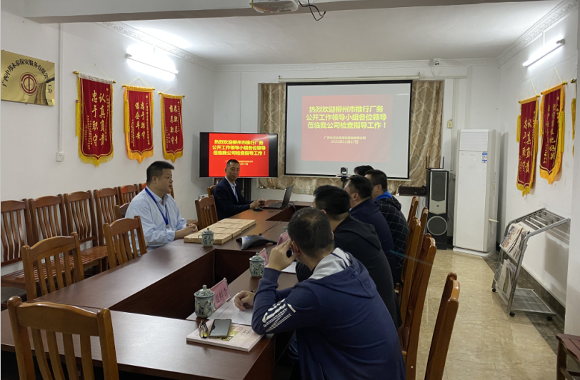 (城中区总工会讯 通讯员邹诗薇报道、摄影) 11月17日上午,由柳州市国资委副主任陶泽鑫带队的柳州市厂务公开第三调研组到辖区企业城中区广西中邦永泰保安服务有限公司进行厂务公开工作调研检查,城中区总工会党组成员、副主席骆钰陪同调研。