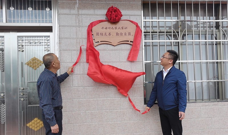 原来,经过几个月的精心准备,牛姆坪屯的89户村民都在家门口挂上了美丽、大方的家风家训牌,打造了美丽乡村的第3个家风家训展示区,让优良家风涵养廉洁之心。11月22日下午,城中区在柳东村牛姆坪屯举行了“立家训、树家风”揭牌仪式。村民代表林丽艳声情并茂地介绍了自家“家风家训”的选取过程,以及“家风家训”小故事。城中区人民政府副区长占平出席活动,并与林家主人一起为家风家训牌揭牌。