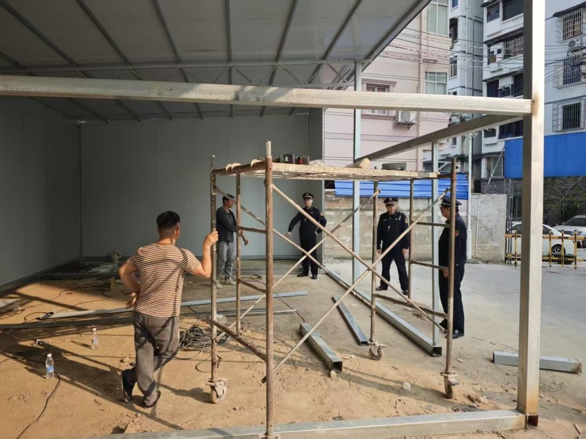 令人意外的是,当事人不仅未配合调查,反而撕毁封条继续施工。3月28日,执法人员复查时发现多名工人在现场施工,对钢架棚的四面外墙进行封闭。执法人员劝离了现场工人,对违建的新建部分进行了破坏性拆除,并再次对当事人进行了严肃的批评教育。