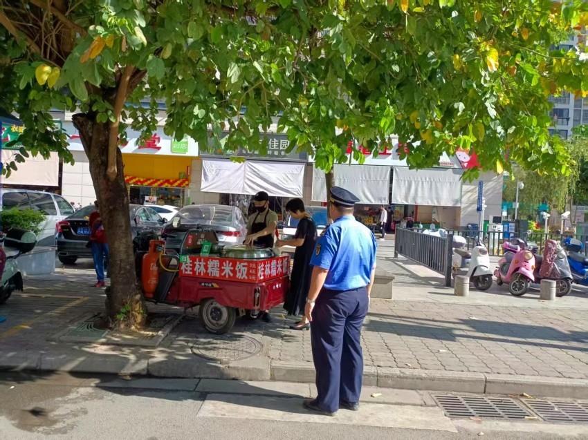 (城中区执法局讯 通讯员邓湖广报道)“五一”假期,柳州这座充满了独特风情魅力的城市迎来了八方游客。青云菜市、水上音乐喷泉等网红打卡点人头攒动,而一抹抹“执法蓝”穿梭其间,用暖心服务和精细管理守护城市“颜值”与安全,成为假日里一道独特的风景线。