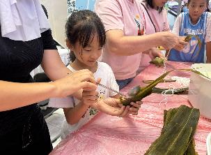 除了充满趣味的游戏,包粽子体验也是本次活动的一大亮点。随着端午节的临近,包粽子成为了传承传统文化的重要方式。活动现场准备了丰富的包粽子材料,职工和孩子们在专业人员的指导下,开始动手包粽子。孩子们好奇地观察着大人熟练的动作,跃跃欲试。在尝试过程中,虽然一开始包得有些歪歪扭扭,但在不断学习和练习中,逐渐掌握了技巧,一个个形态各异的粽子诞生了。这个过程不仅让孩子们体验到了包粽子的乐趣,还让他们对中国的传统文化有了更深入的了解,也让职工们感受到了与孩子共同参与传统活动的快乐,增进了亲子关系。