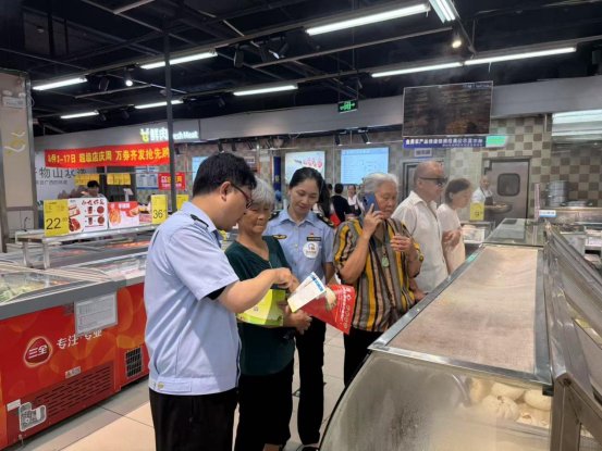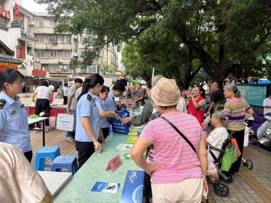 为了进一步深化和加强食品安全的科普宣传工作,广泛传播和普及食品安全相关的科学知识,倡导社会各界积极参与食品安全治理,8月6日上午,城中区市场监督管理局联合区农业农村局、城中公安分局及“八桂食安”志愿服务队等相关部门,在解放南路联华超市有限公司(解放店)门前共同举办了“尚德守法,共享食安”为主题的2025年柳州市城中区食品安全宣传周活动。