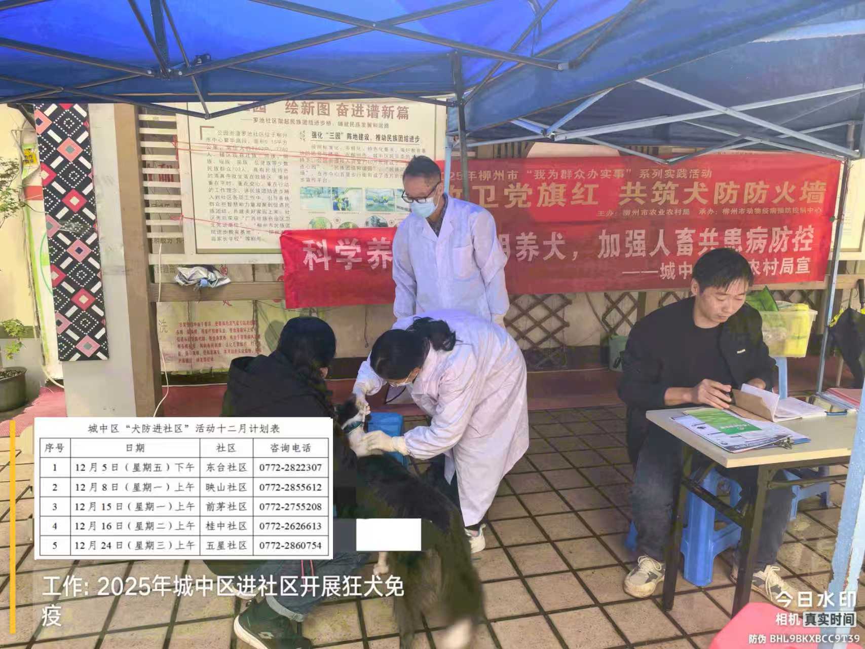 城中区农业农村局十二月继续为辖区养宠居民打通便民“最后一公里”。十二月计划表已出,欢迎饲养宠物犬的主人携带宠物犬来社区免费为爱犬接种狂犬疫苗,共同守护公共安全。