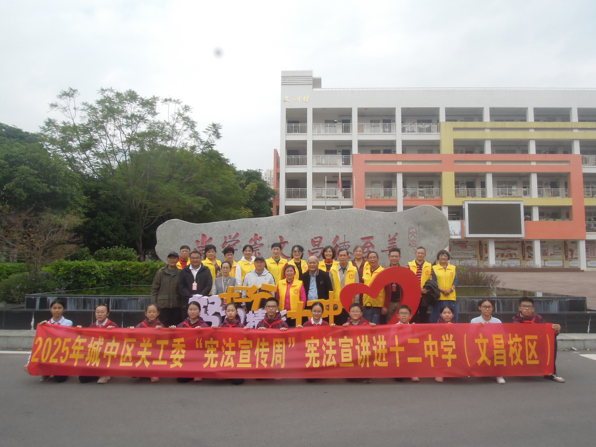 (区关工委办讯 通讯员:程中)在第十二个“国家宪法日”即将到来之际,12月1日,柳州市教育局、城中区关工委十二名五老宣讲员,到第十二中学文昌校区,开展 2025年关工委“宪法宣传周”宪法宣讲进十二中学(文昌校区)青少年普法教育活动,增强青少年法治意识,提高自我保护能力,为青少年健康成长保驾护航。