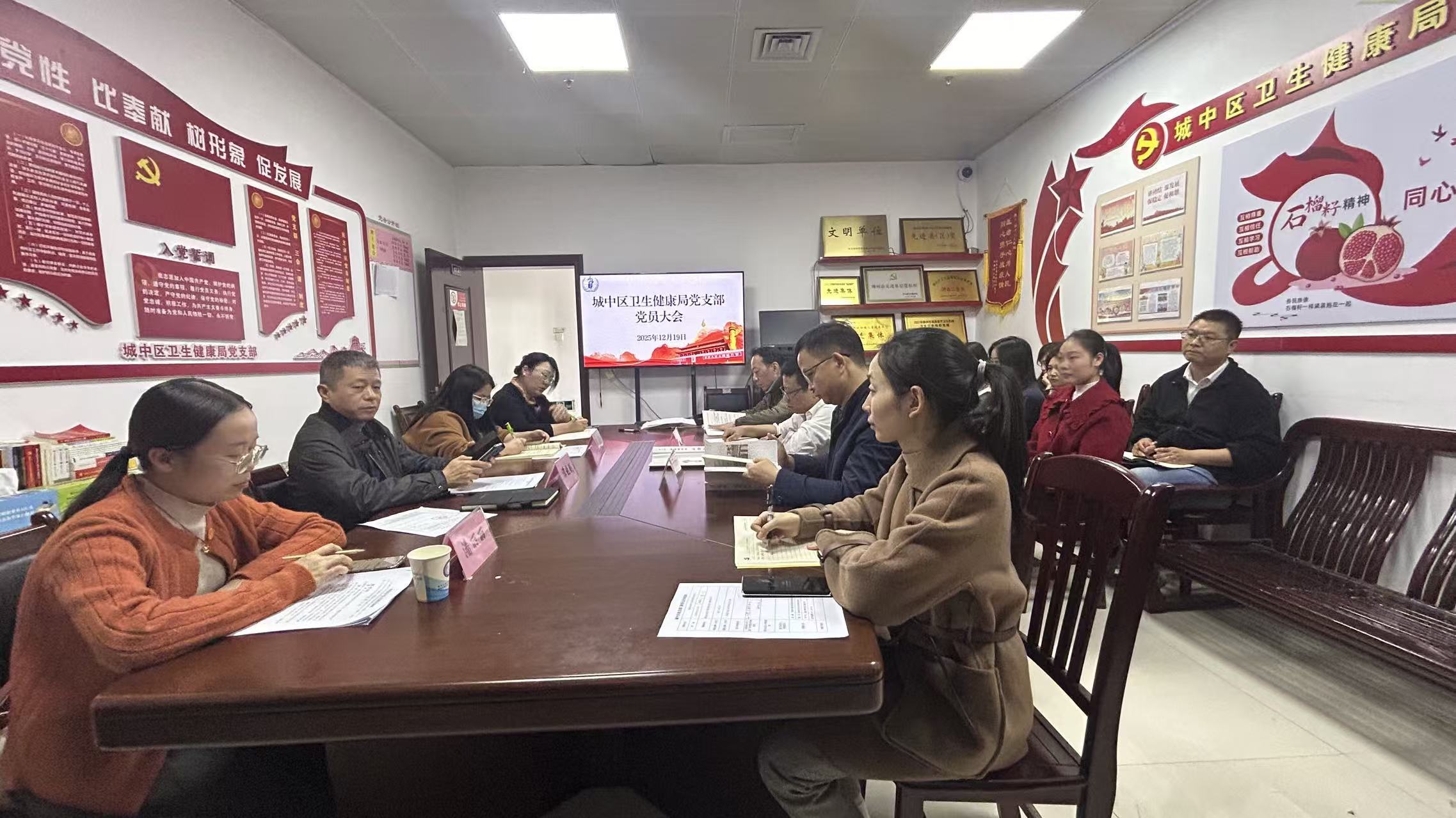 为进一步推进学习贯彻习近平新时代中国特色社会主义思想主题教育走深走实,深入学习贯彻党的二十届四中全会精神,加强党员干部网络安全意识,12月19日下午,城中区卫生健康局党支部召开党员大会。会议由党支部书记谭晓剑同志主持,支部全体党员、入党积极分子参会。