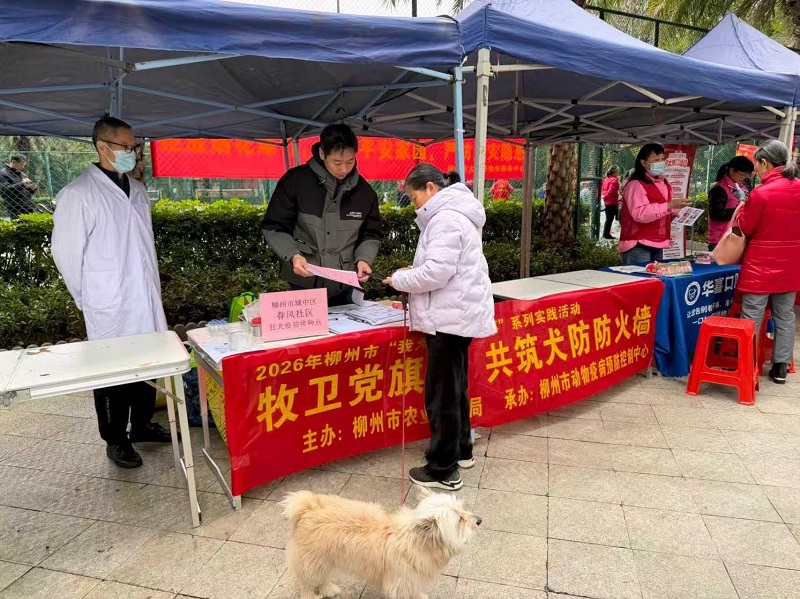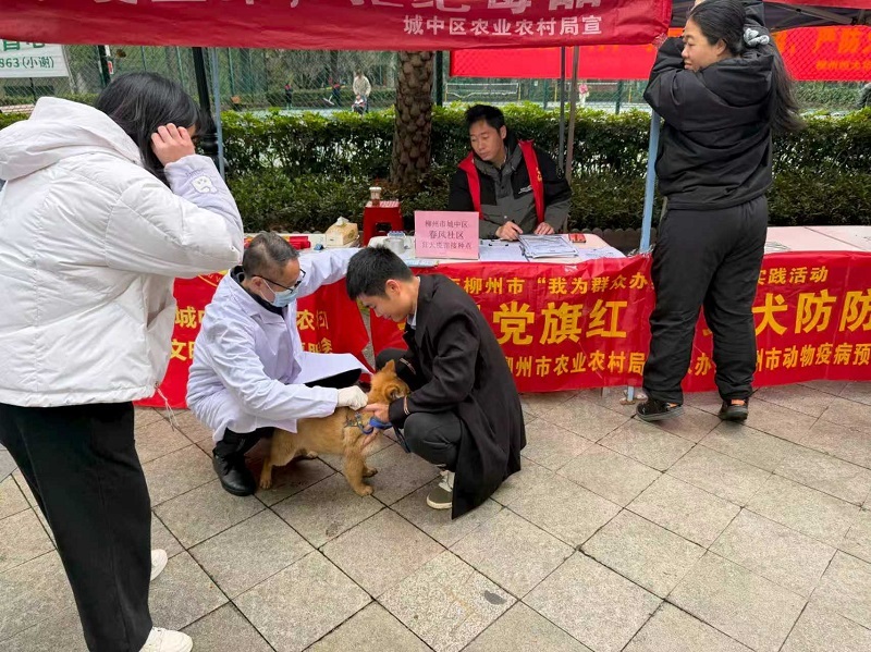 3月3日,城中区农业农村局联合柳州市动物疫病预防控制中心在春风社区恒大华府开展雷锋志愿服务活动,免费为居民宠物犬接种国产狂犬疫苗。
