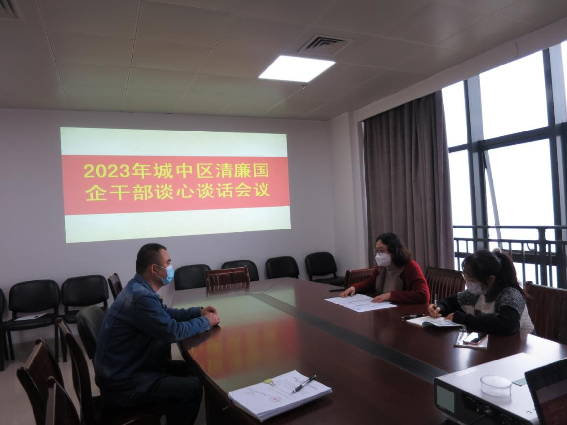 为深入推进党风廉政建设和反腐败工作,进一步筑牢城中区国有企业干部职工廉洁自律意识,不断改进工作作风,近日,区财政局以谈心谈话为重要抓手,组织丰鑫公司召开2023年城中区清廉国企干部谈心谈话会议。