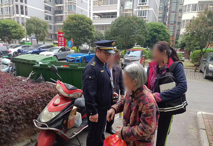 当天下午5点左右,城中区城管执法局河东特勤中队的执法队员在学院路广西科技大学后门附近执勤时,遇到一名头发花白,满脸疲惫的老人上前求助,称自己住在广西科技大学宿舍小区。当天中午出来散步,但回家时却发现小区的大门“关上了”,自己等了一个多小时“门都没开”。又累又困时,看到了城管队员,就上前求助。