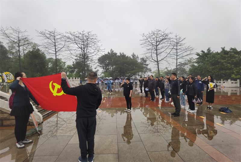 党员们怀着崇敬的心情来到柳州市烈士陵园烈士纪念碑前,认真聆听革命先烈光辉事迹,向革命烈士默哀,鞠躬,随后,城中区环卫所党支部书记聂晨带领全体党员面向党旗,重温入党誓词,表达对共产党的忠诚、对烈士的敬仰。