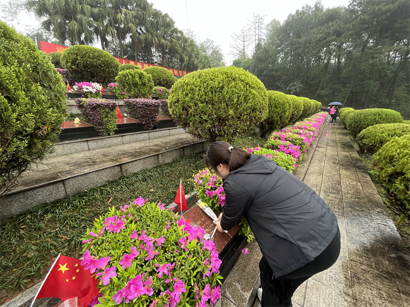 最后,党员有序排队绕烈士纪念碑环行一圈,并到烈士陵园扫墓,给长眠于此的烈士们擦拭墓碑、鞠躬行礼、敬献鲜花,共同表达对革命烈士崇高精神的无限敬仰与追思。