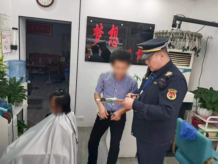 当天下午3点左右,执法人员对河北半岛区域的沿街餐饮店面逐一开展燃气安全使用整治排查。受检的60多家店面都检查合格。但在弯塘路东一巷的检查过程中,有市民现场向执法人员反映称,该巷子里有两家美发店里使用的还是蓝色燃气罐,涉嫌使用“黑气”,希望执法人员能前往处置。
